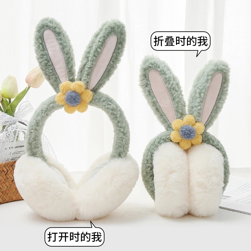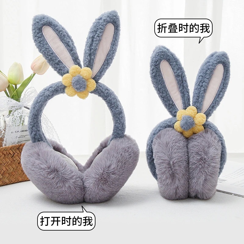 耳当て付き女性用冬用防寒自転車用防凍防寒 耳を守る神器 可愛いウサギ耳 折りたたみ可能 学生用イヤーマフ