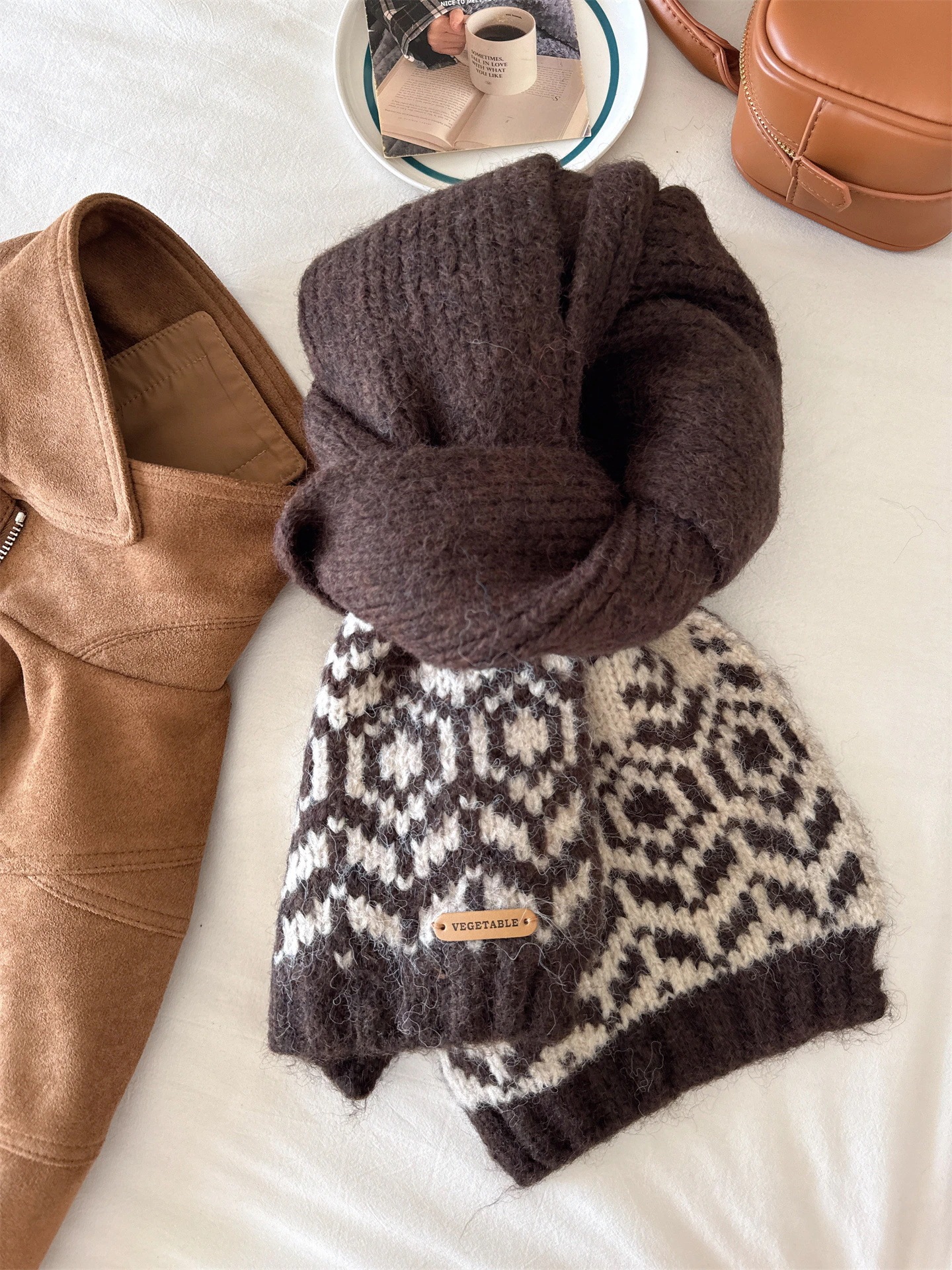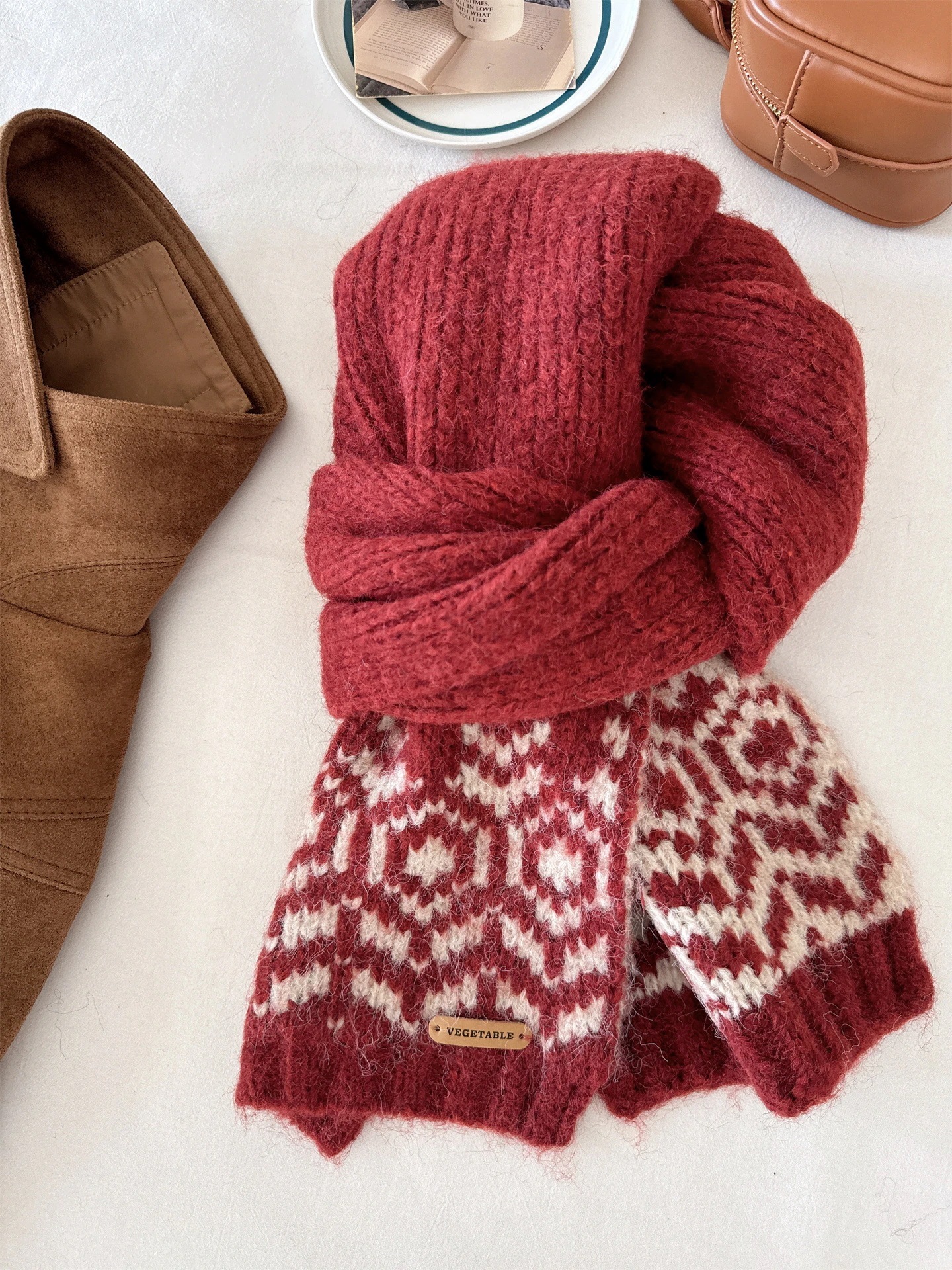 韓国2025新作 冬用 クリスマス・新年用マフラー ジャージー編みスカーフ 女性用 秋冬シーズン