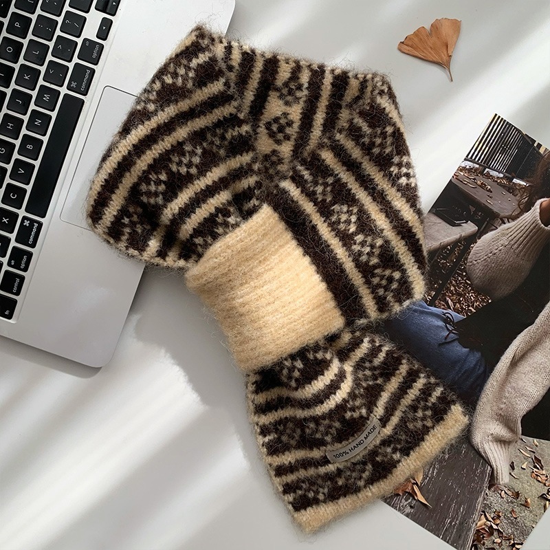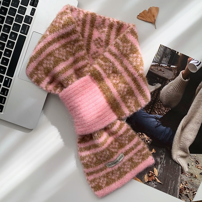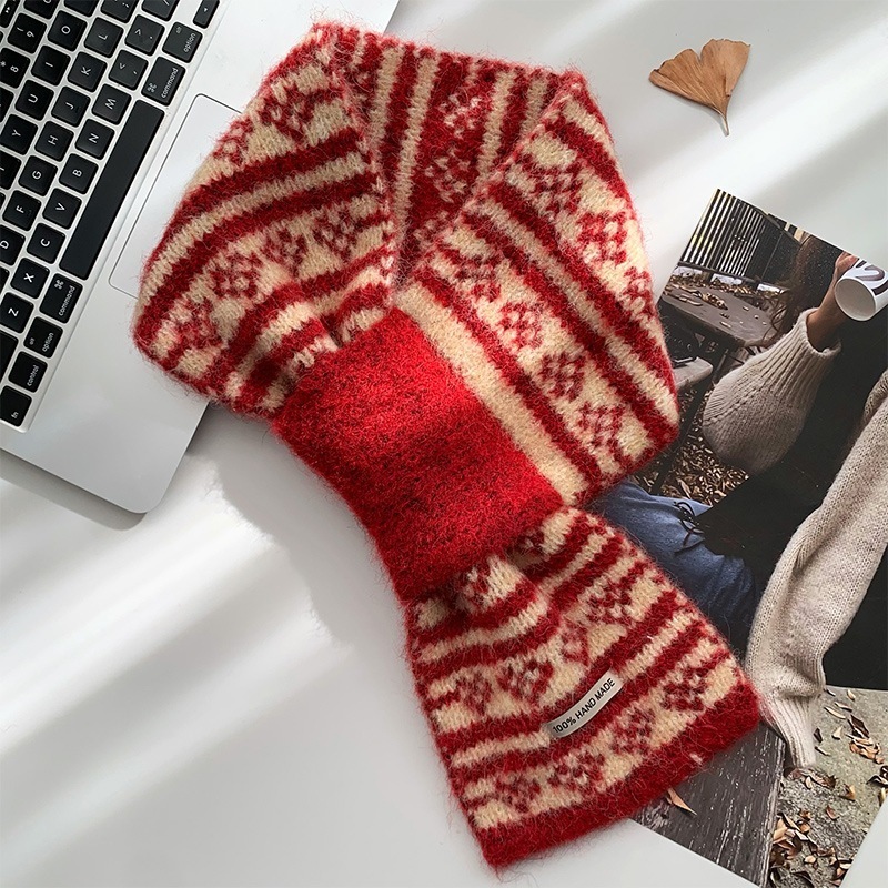 女性用のレイジースタイルのニットマフラー2025年の新スタイル高級冬スタイル暖かくて防寒性のあるネックウォーマー
