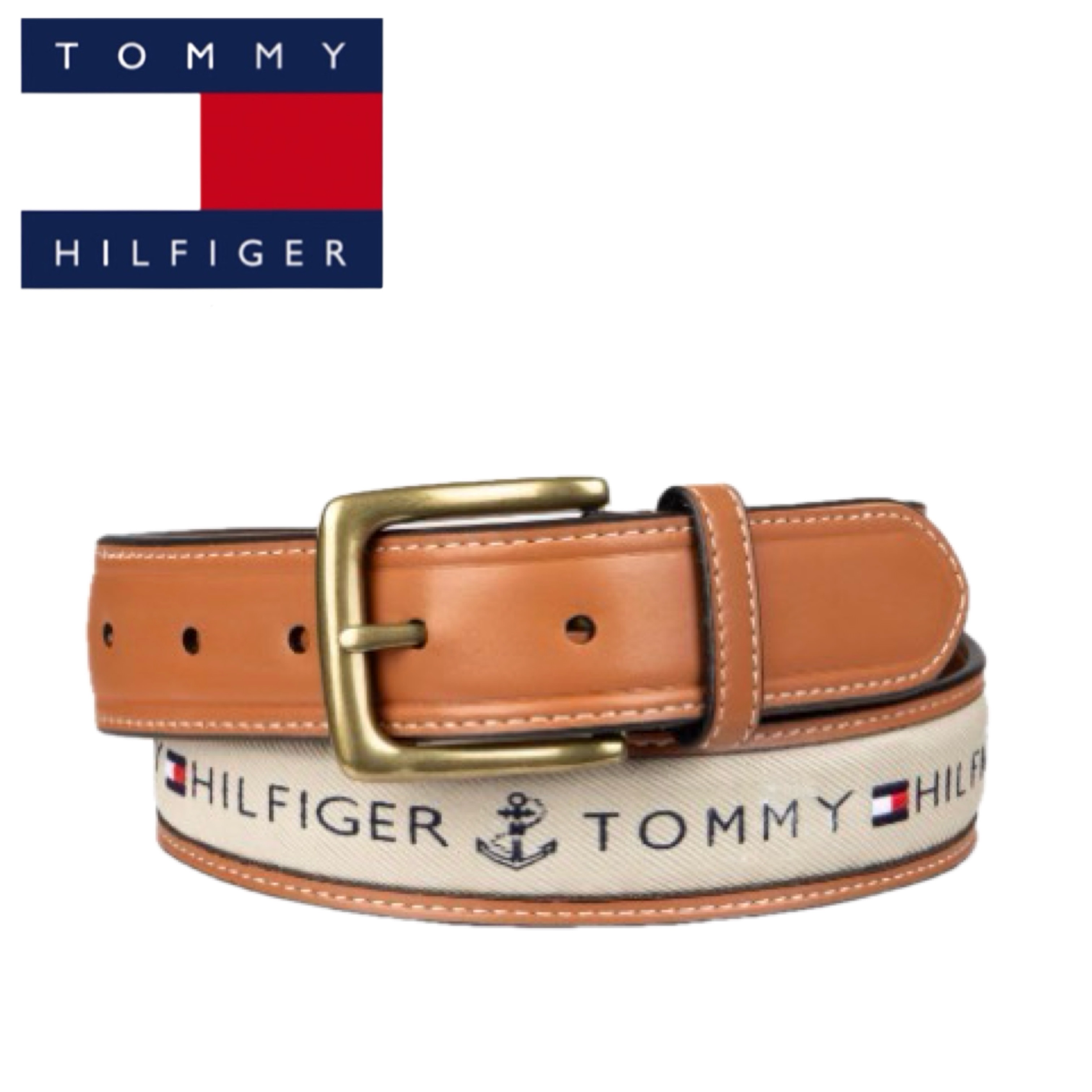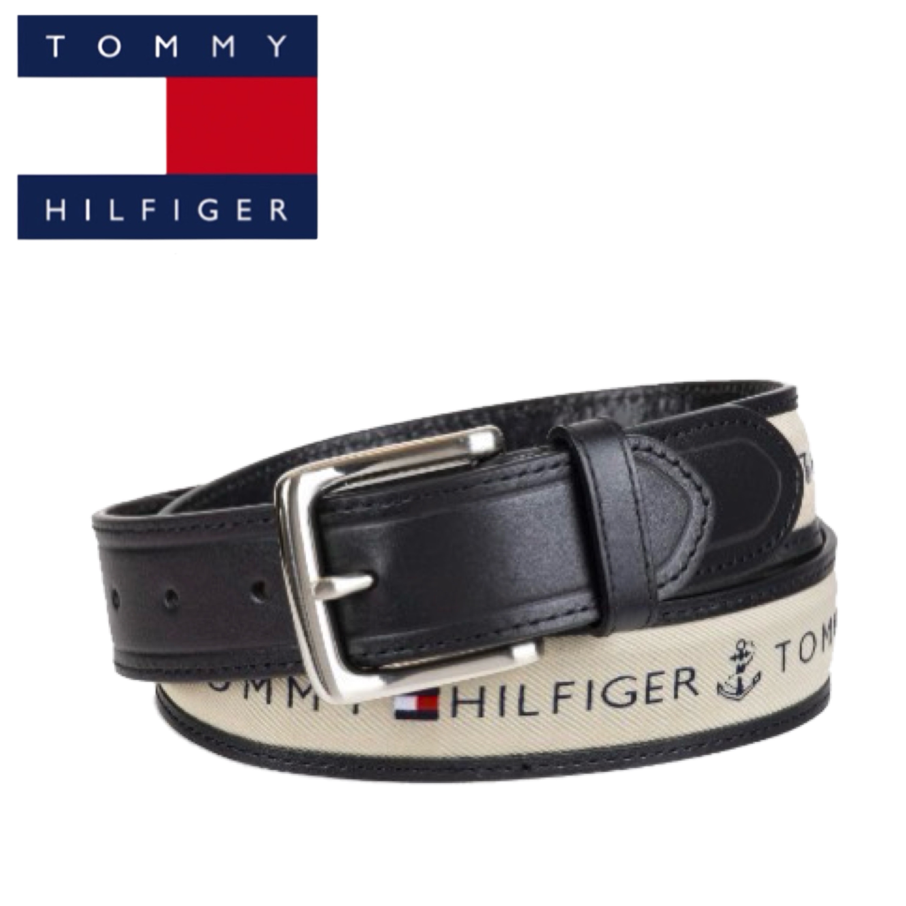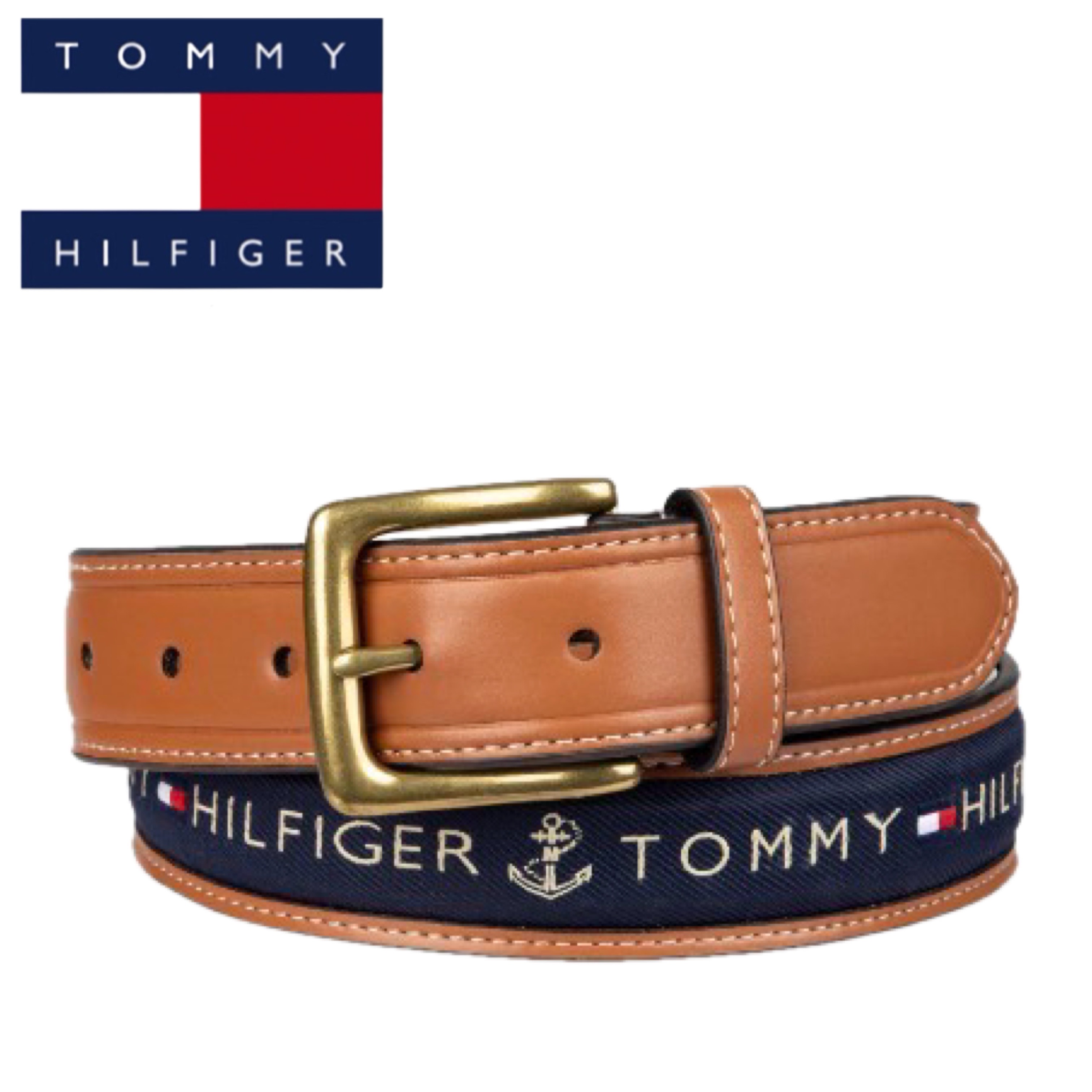 トミーヒルフィガートミーヒルフィガー ベルト メンズ バックル 11TL02X032 レザー コットン プレゼント ロゴ TOMMY HILFIGER ANCHOR LOGO RIBBON INLAY LEATHER