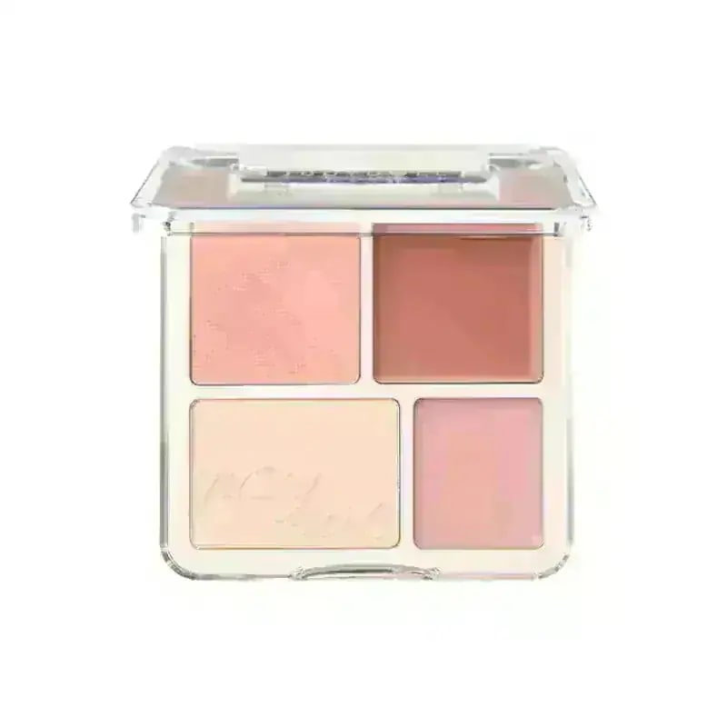 まず見た目から可愛すぎてテンション上がりました。コンパクトの中に4色入っていて、チーク・ハイライト・ニュアンスカラーなどが1つにまとまっているマルチパレットです。3色のチークとマットハイライトが入っていて、これ1つで顔の立体感や血色感まで作れるのがすごく便利だと思いました。実際に使ってみると、粉質がかなりしっとりしていて肌にふわっと密着します。発色は強すぎず、じゅわっと内側からにじむような血色感が出る感じで、ナチュラルなメイクが好きな人には特に合いそうだなと思いました。重ねればしっかり発色させることもできるので、メイクの雰囲気に合わせて調整できるのも良いところです。 ハイライトはギラギラというより、ふんわりとした自然なツヤ感。鼻筋や頬の高い位置に入れると、肌が明るく見えて一気に垢抜けた印象になります。マットハイライトは顔の凹み部分に入れると立体感を作れるので、涙袋メイクやメイク直しにも使えてかなり万能でした。個人的に良いと思ったポイントは、チークをアイシャドウとしても使えるところです。カラーの統一感が出るので、簡単に全顔統一メイクが完成する感じで、忙しい朝やメイクを時短したい日にもすごく便利だと思いました。 パッケージもコンパクトで持ち運びしやすいので、ポーチに入れておくと外出先のメイク直しにも使いやすいです。価格も約2000円以内で買えるので、コスパ的にもかなり優秀だと思います。おすすめです!