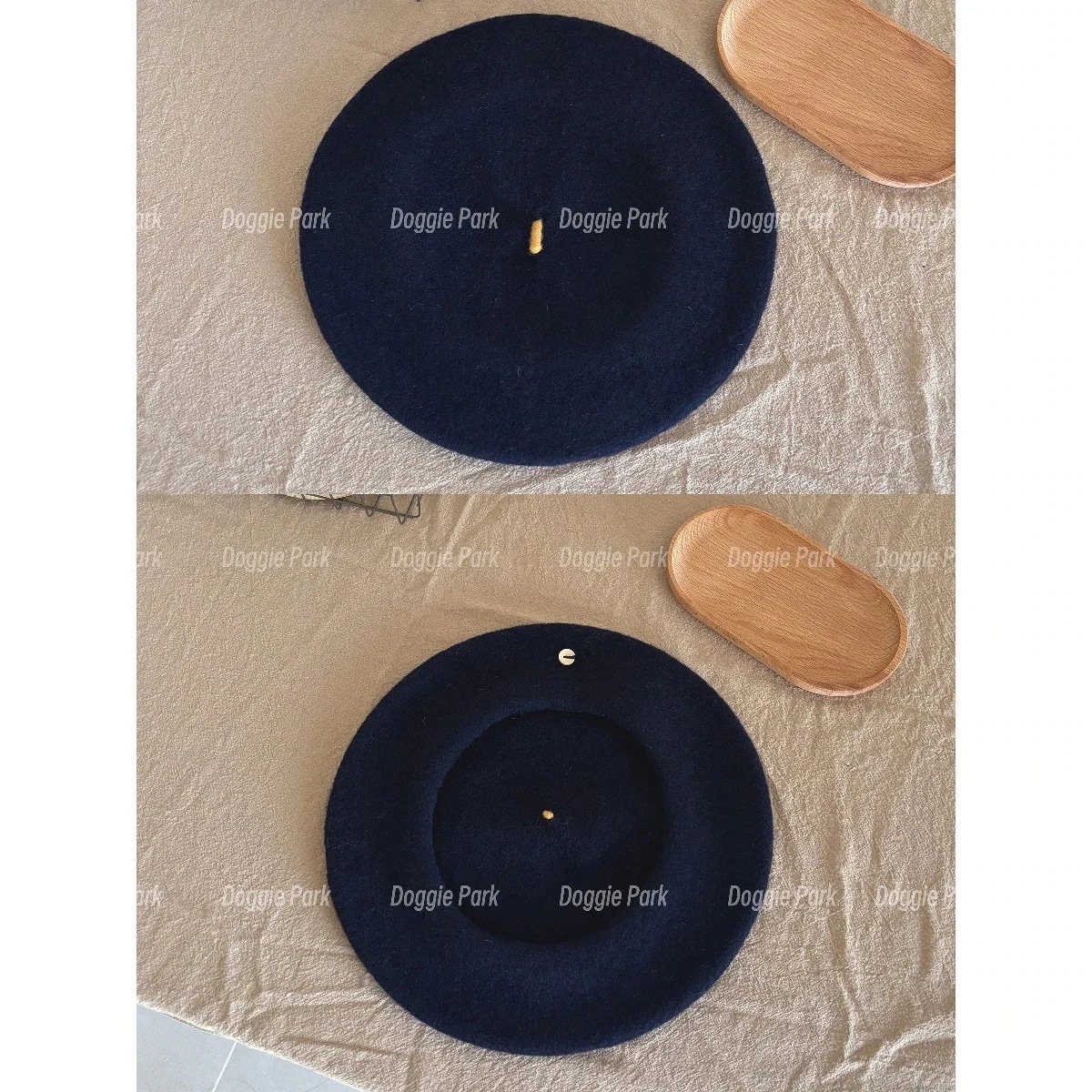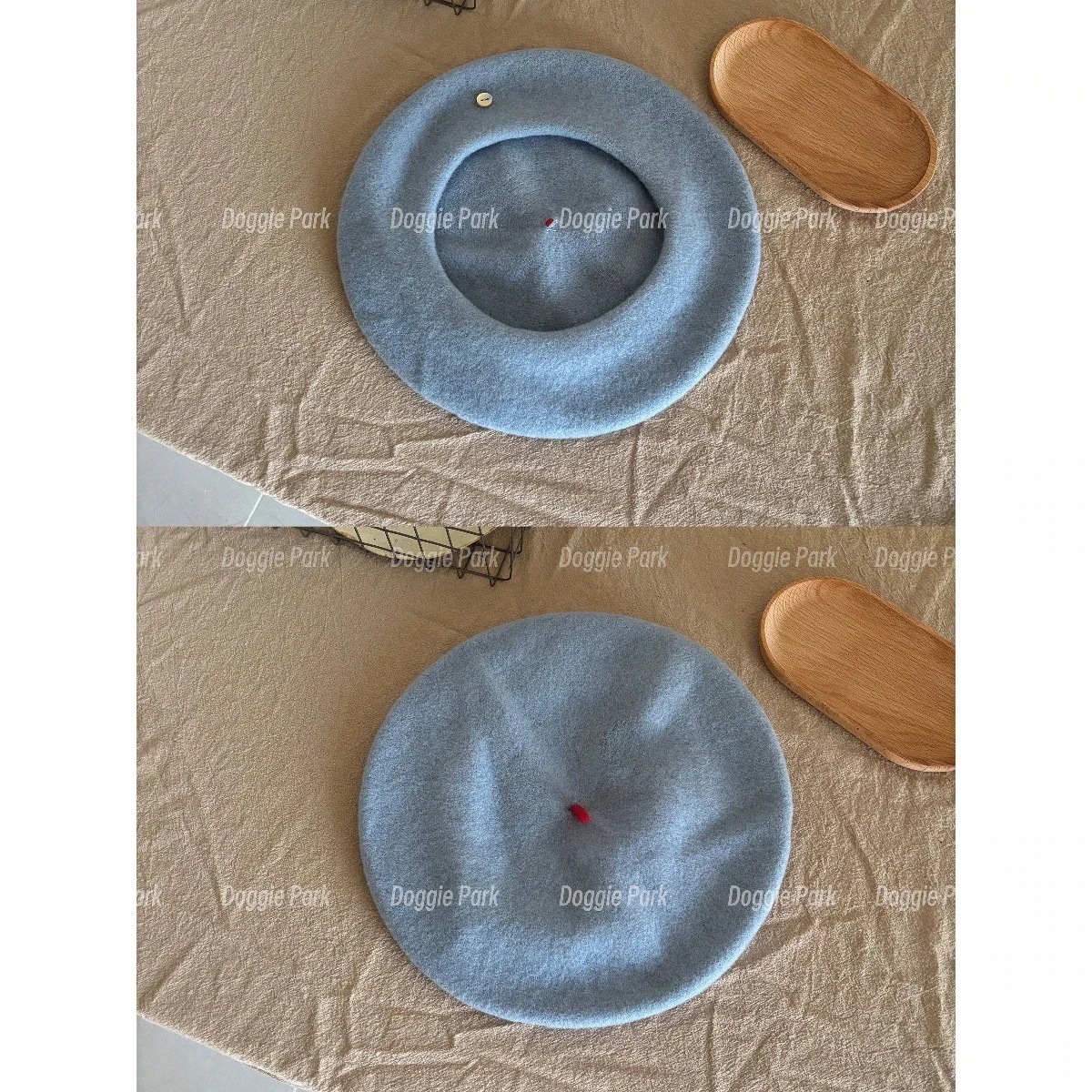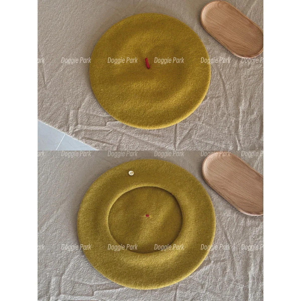 【3日出荷】単色ウールベレー帽 ボタンデザイン 顔痩せ効果帽子 キャップ