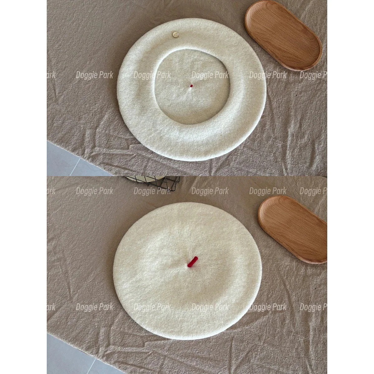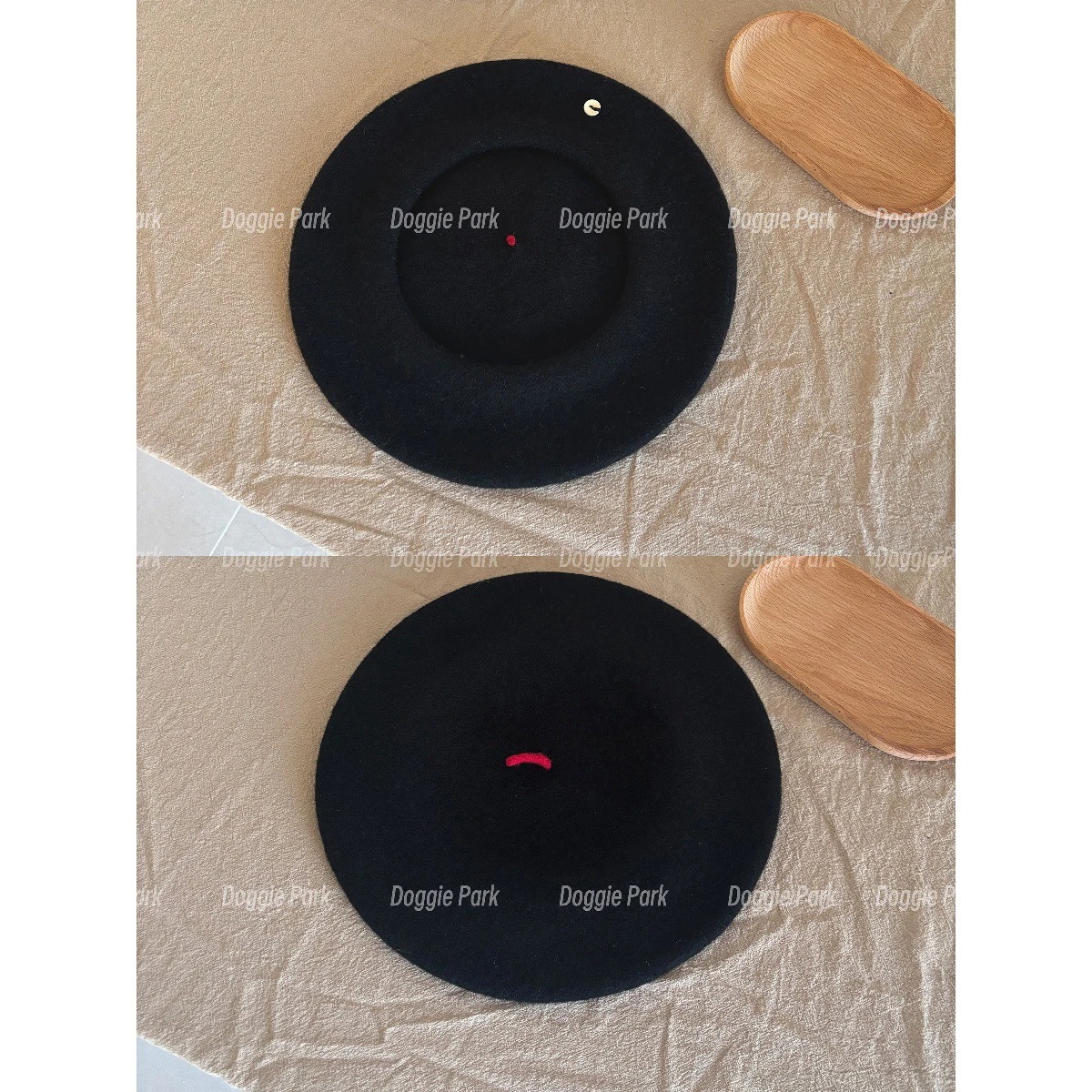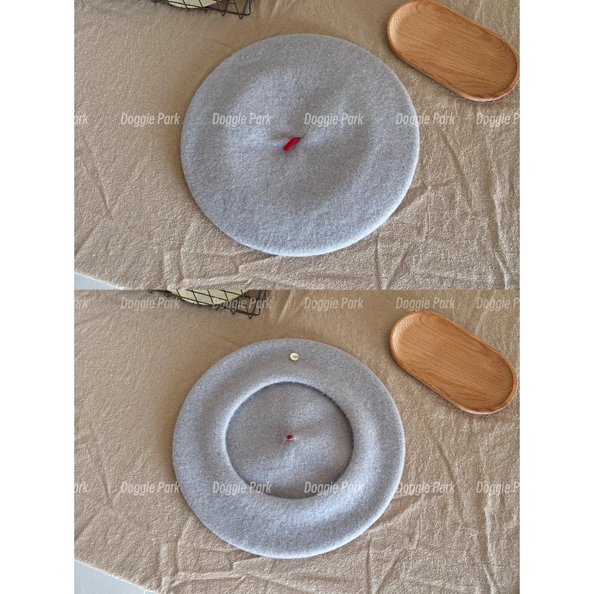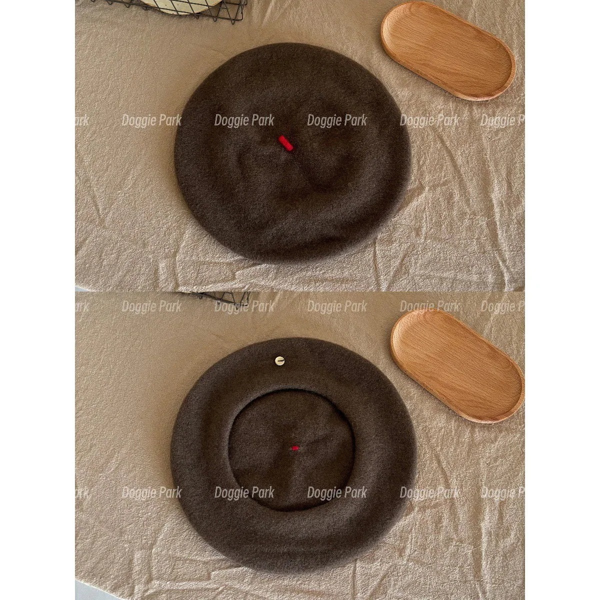 【3日出荷】単色ウールベレー帽 ボタンデザイン 顔痩せ効果帽子 キャップ