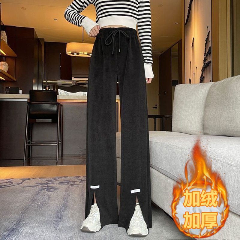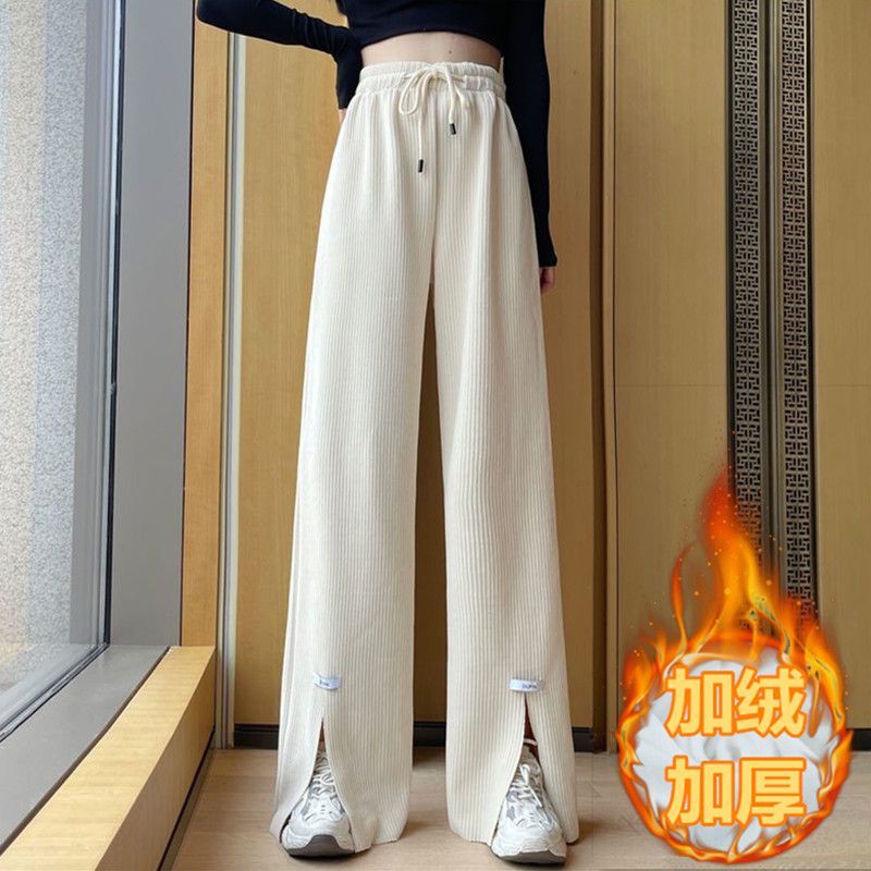 秋冬 レディース 裏起毛 ゆったり フォーク ワイドレッグ 着痩せ 百掛け 足が太い 肉を隠し ストレートパンツ