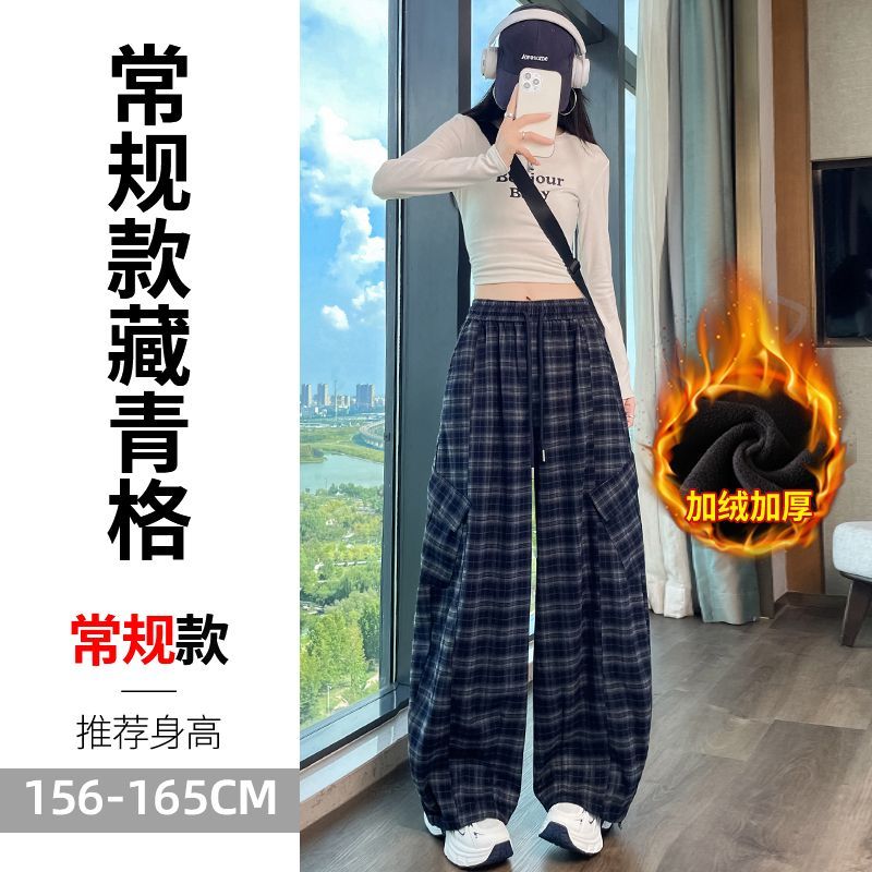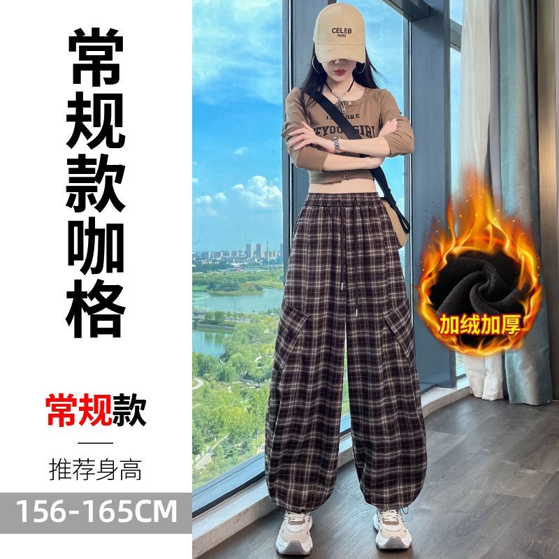 2025 新しい 裏起毛 レディース 格子 曲刀 ズボン ハイウエスト 束足 2着 運動 カジュアルパンツ
