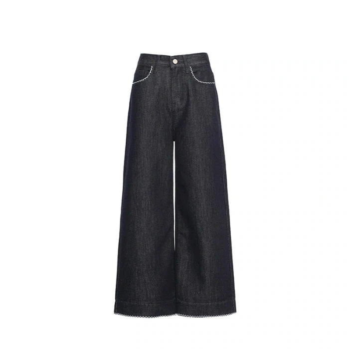 【3日出荷】濃紺デニムワイドパンツ レディースルーズ着痩せ ドレープ効果フロアグラーズパンツ 春秋季 ズボン
