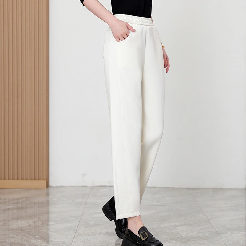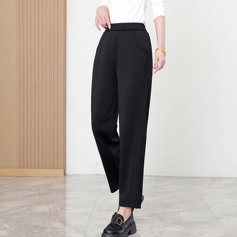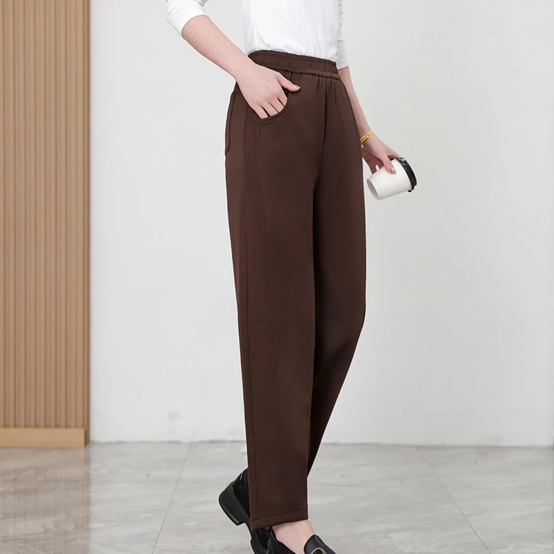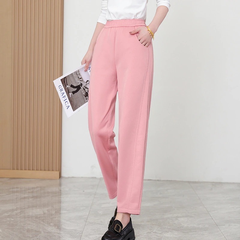 【3日出荷】ハイウエストニットハレムパンツ レディース着痩せドレープ通気性 スポーツスタイルゴムウエストクロップド 春秋季 ズボン