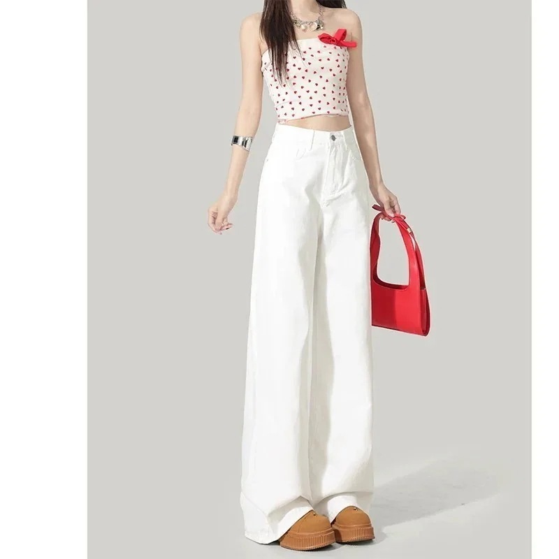 【3日出荷】ハイウエストデニムワイドパンツ トレンド薄手モデル ルーズ着痩せドレープ効果 春秋季 ズボン