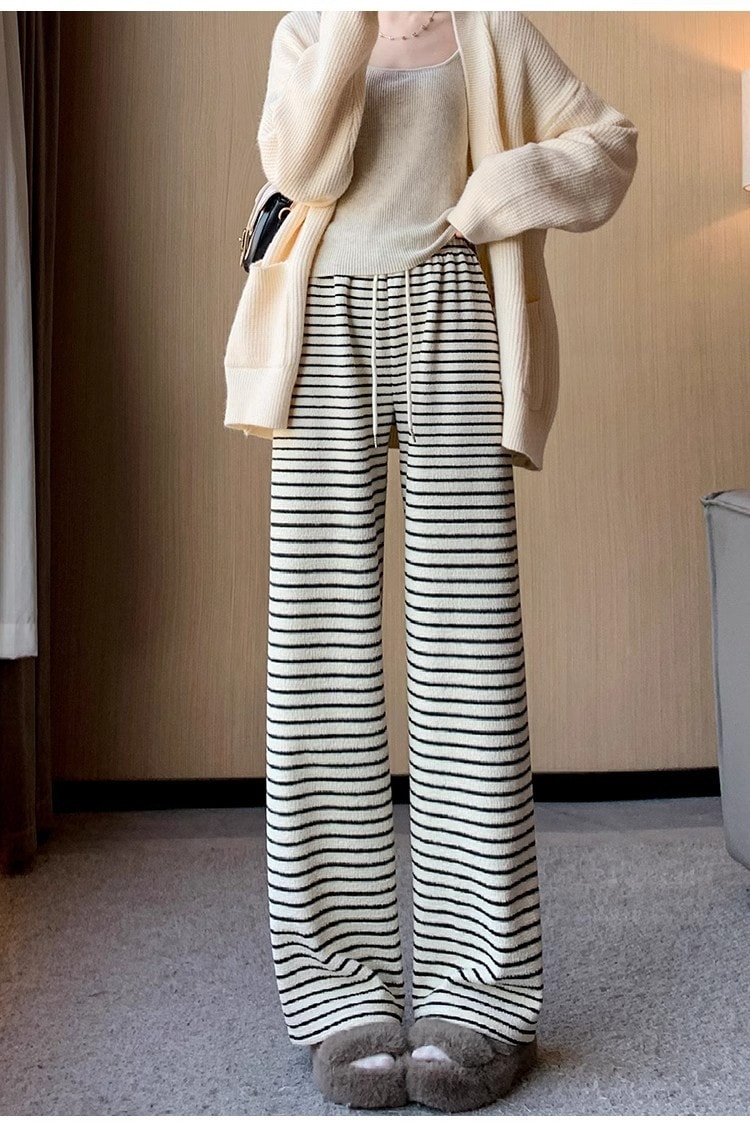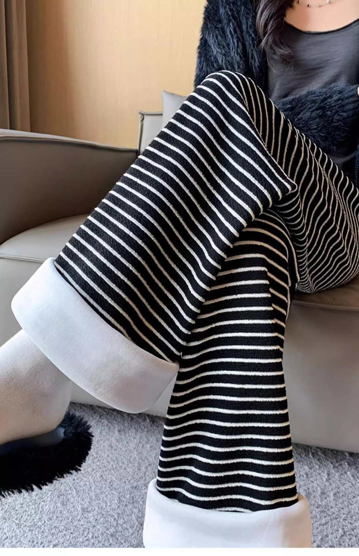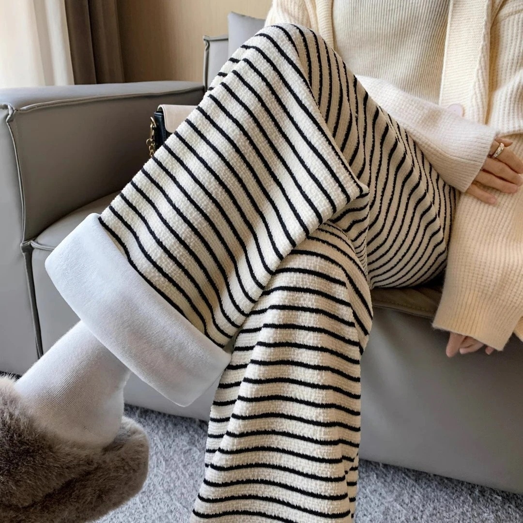 【3日出荷】冬秋レディースフリース入り加厚タオル地パンツ もちもち素材 ルーズワイドレッグ ストレート 暖かパンツ
