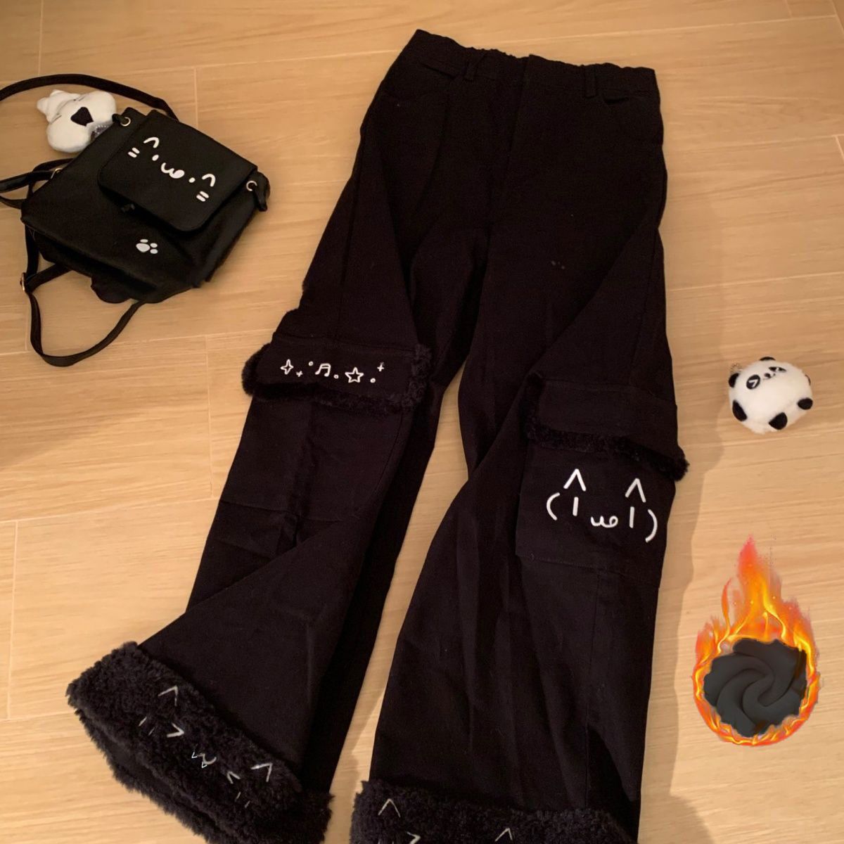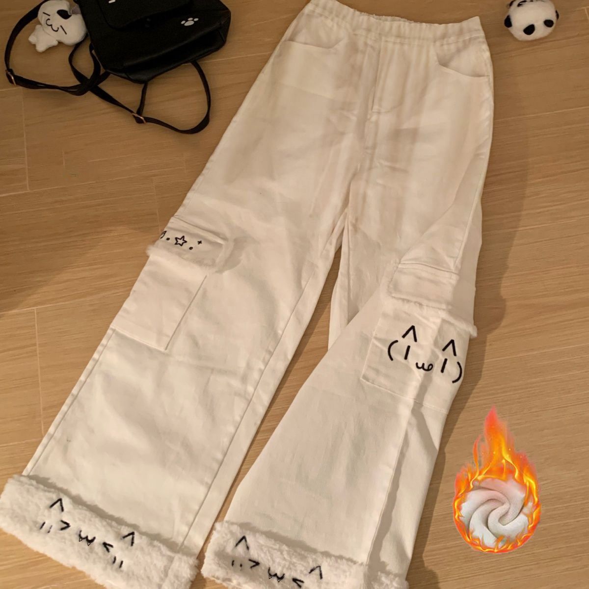 かわいい 軟弱女子 二次元 縫いぐるみの縁 ロングズボン 秋冬 裏起毛 大きなポケット 百掛け 通勤 ストレートパンツ
