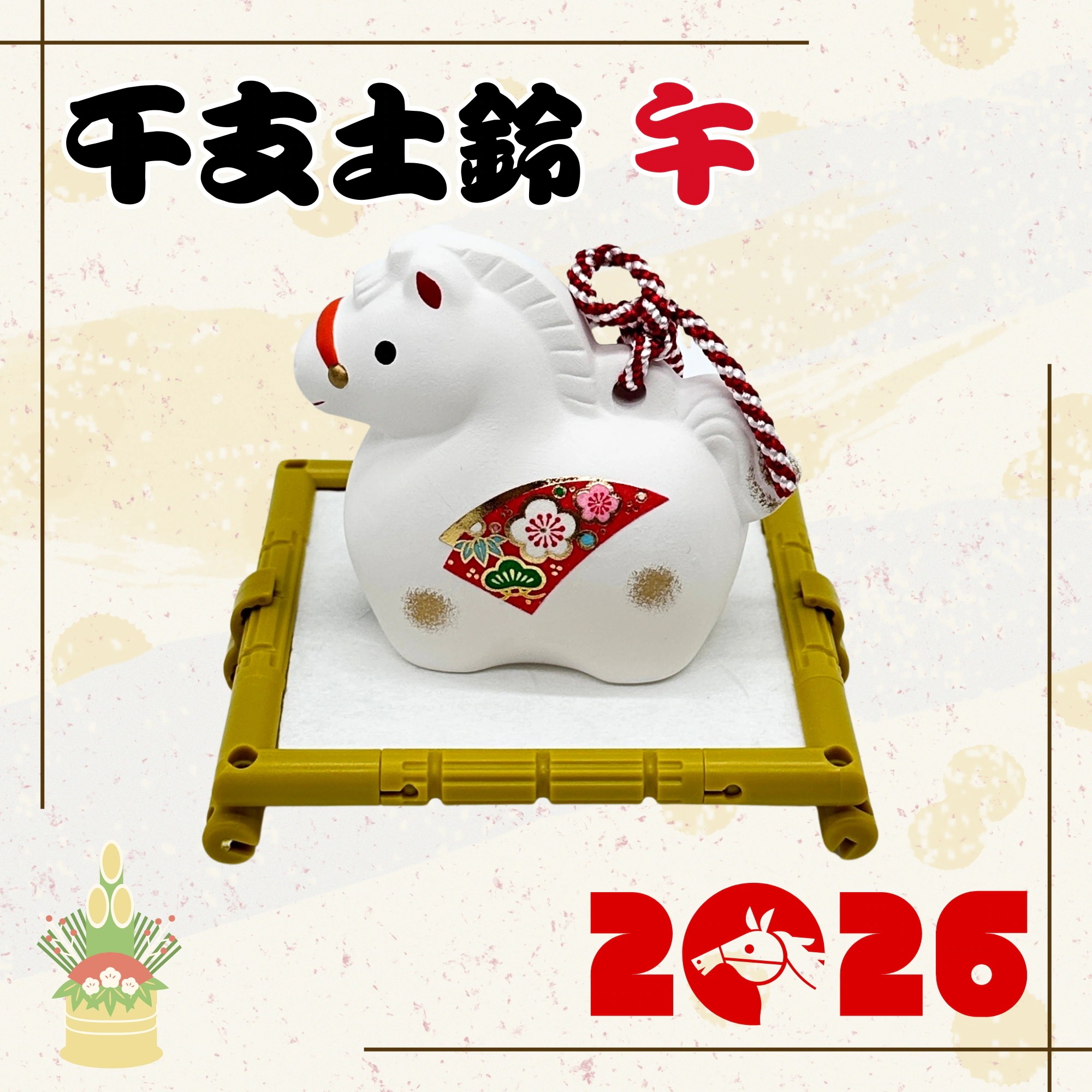 開運干支土鈴 午年 飾り台付き 置物 お正月 縁起物 コンパクト かわいい 招福 午 馬 干支飾り 干支置物 新年飾り 迎春 年末年始 縁起飾り インテリア小物 和雑貨 和風インテリア 台座付き