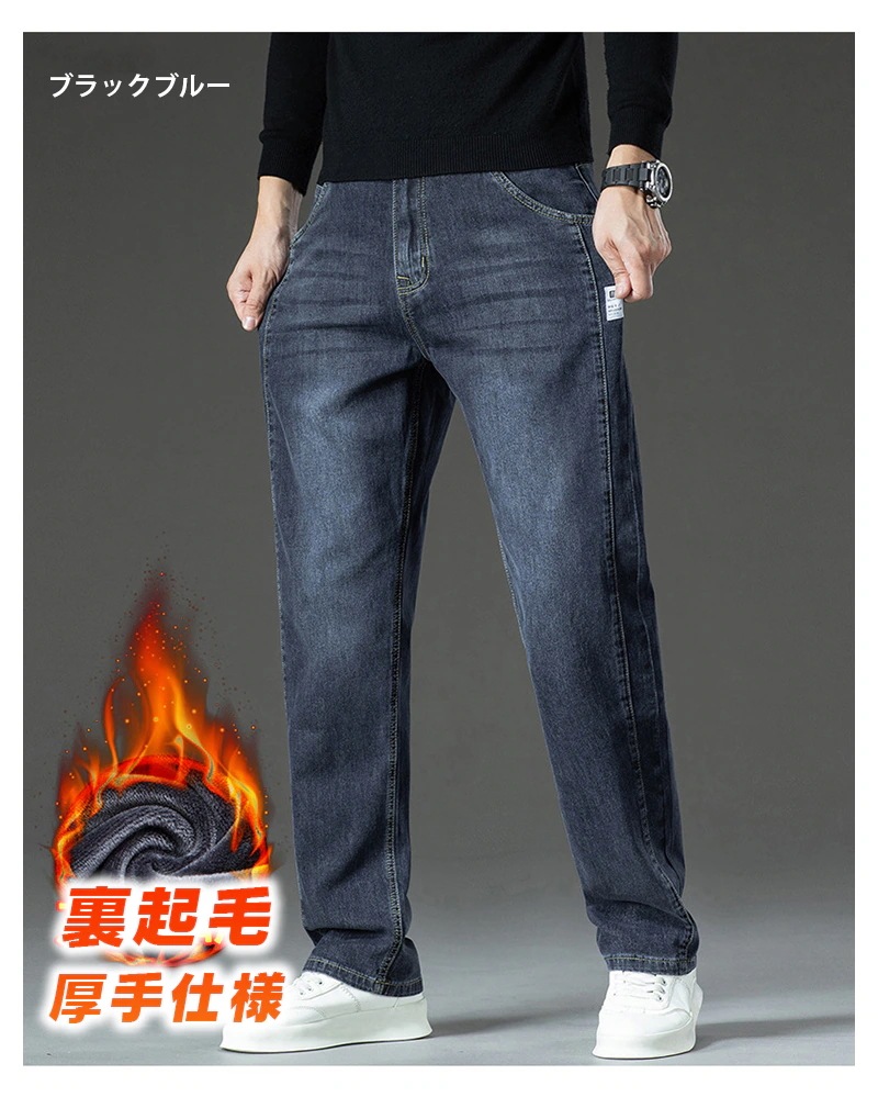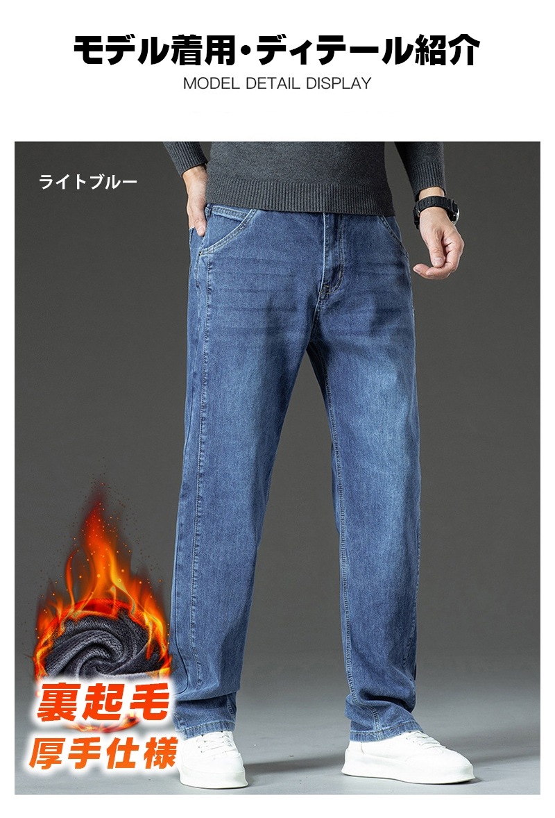デニムパンツ ジーンズ ズボン メンズパンツ カジュアルパンツ 裏起毛 裏ボアストレートタイプ デニム 微ストレッチ 体型カバー 冬 厚手 軽い 防風 防寒 極暖 細身 細見 スキニー ジーパン