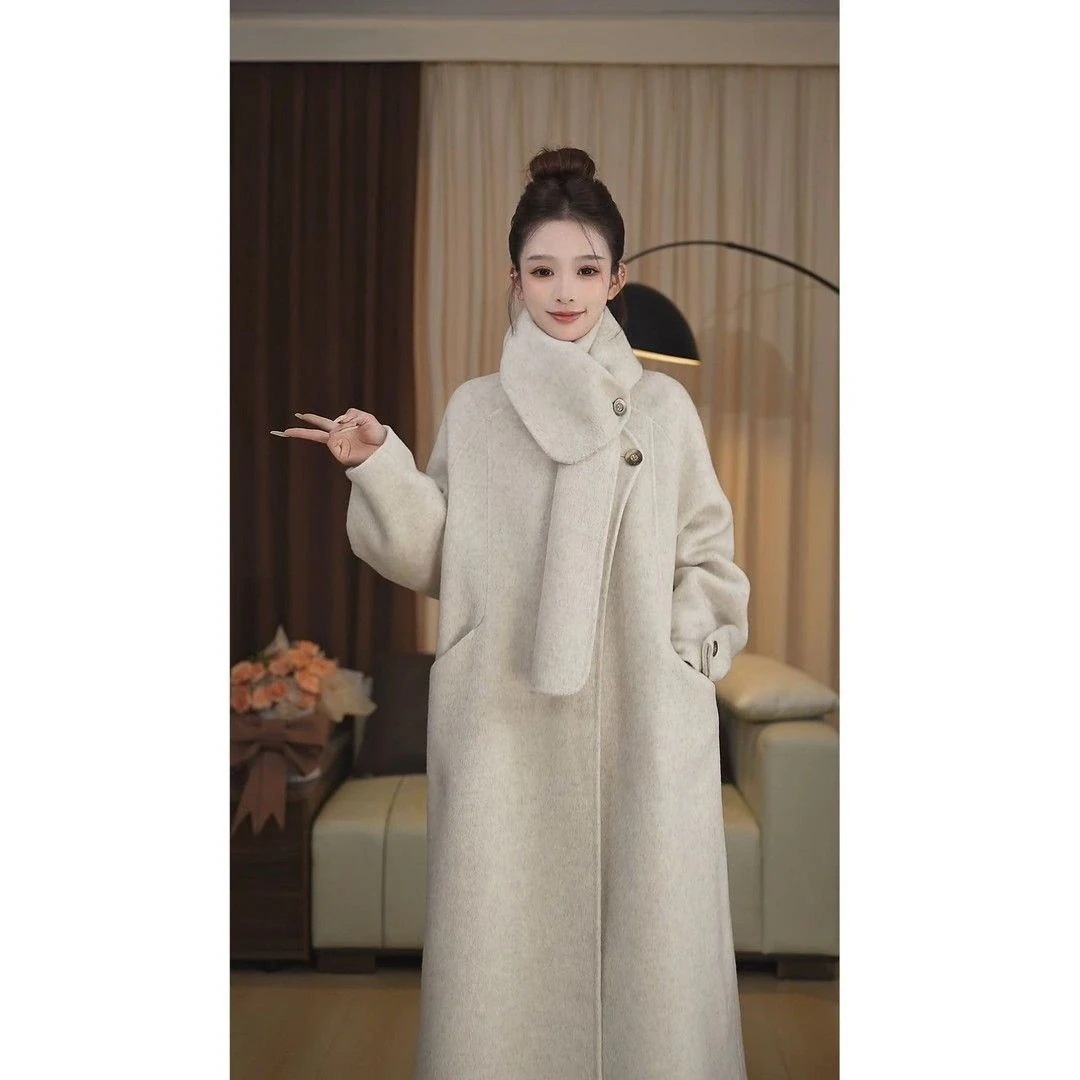 【人気アイテム】秋冬 レディース 新作 アルパカ ルーズフィット 万能コーデ デザイナーズ感 スカーフ付き ウール 手縫い コート コート