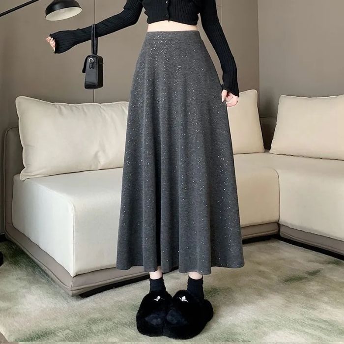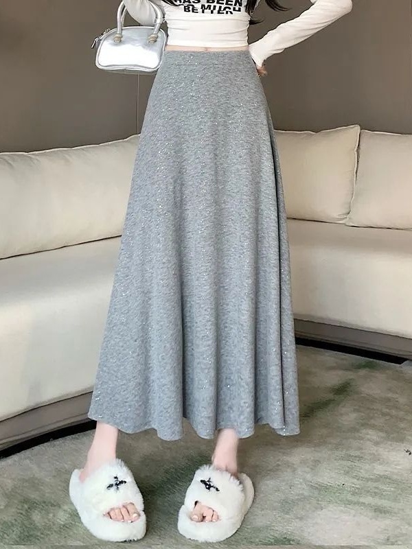 大人気 スパンコールロングスカート 春秋ロング丈Aライン スカート ハイウエスト プリーツスカート ロングスカート スリミング着痩せ 体型カバー 韓国ファッション シンプル 百掛け
