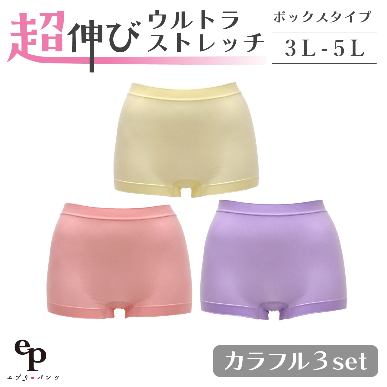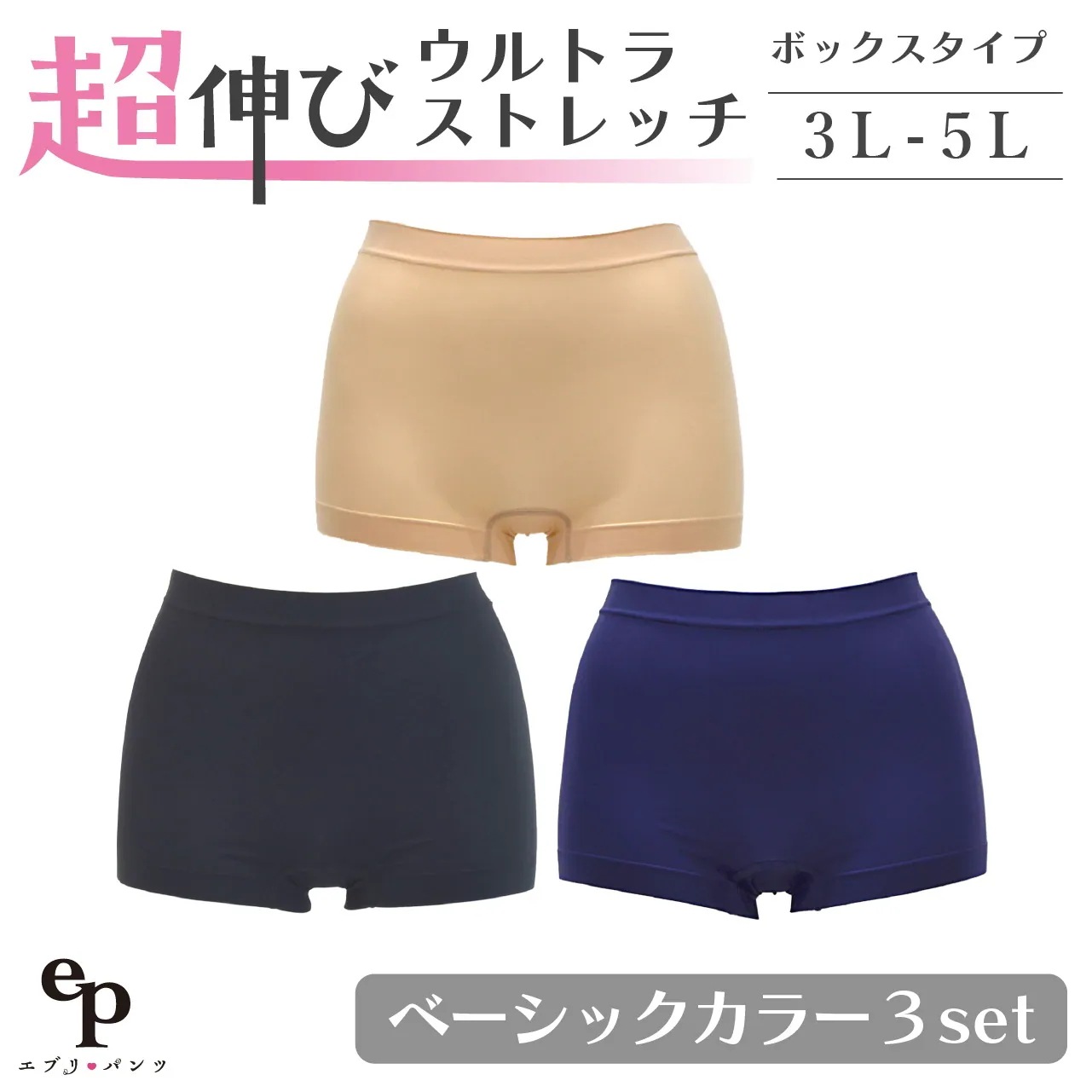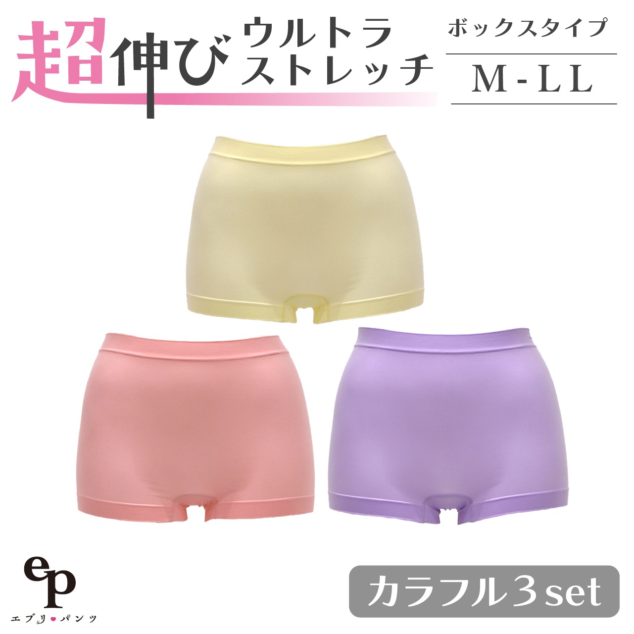 ELENEショーツ 3枚セット ベーシックカラー 超伸び ウルトラスストレッチ ボックスタイプ エブリパンツ 女性 下着 レディース ボックス 一分丈 セット パンティセット