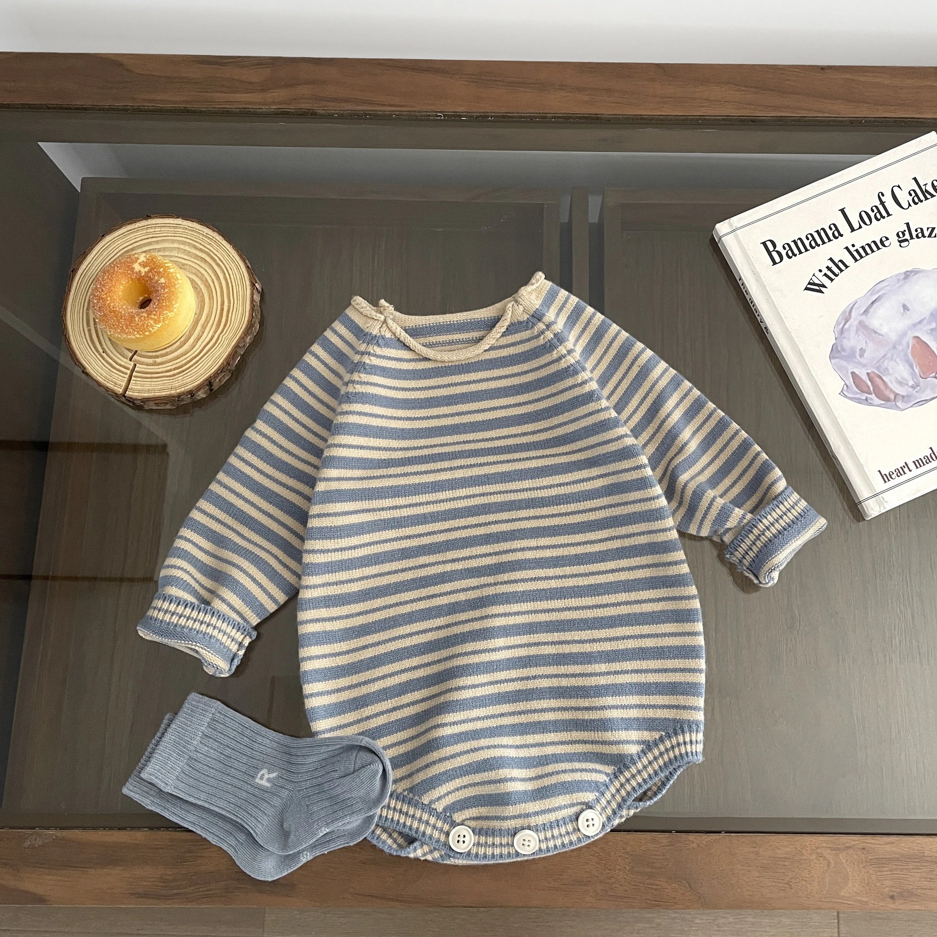 ベビーニットハーネスベビーストライプ外出用セーターロンパース春秋用新生児ロンパース