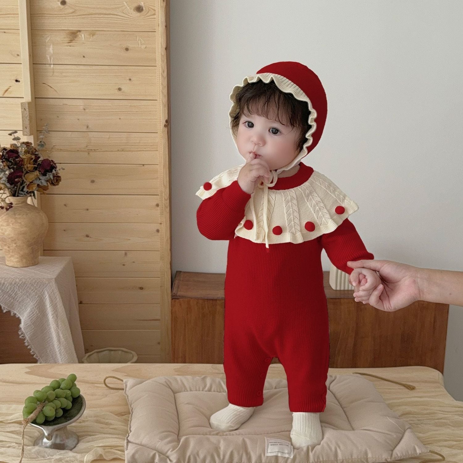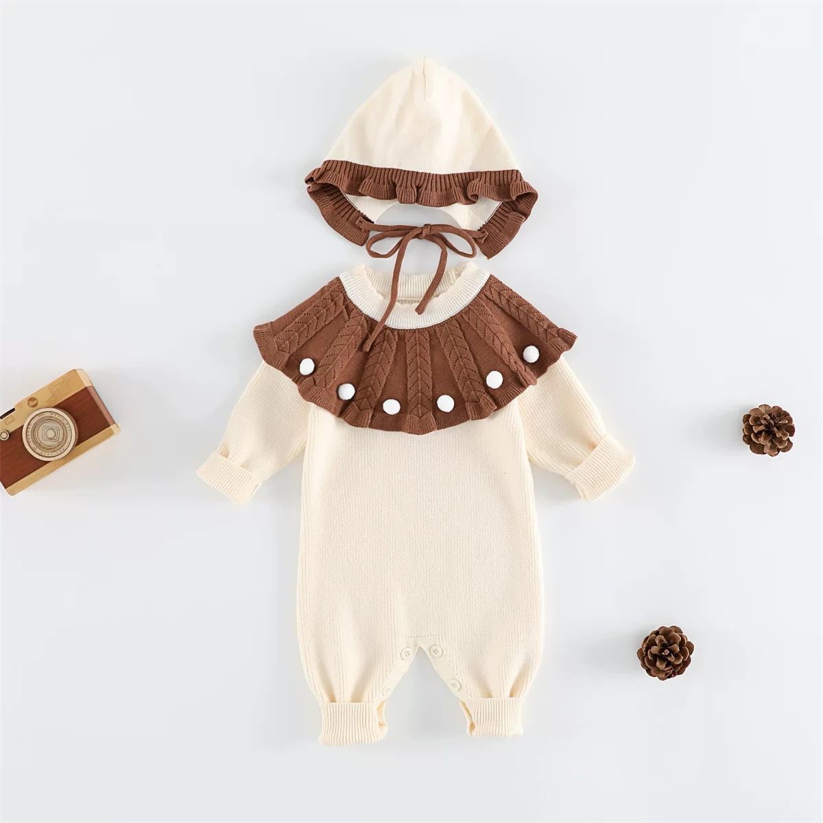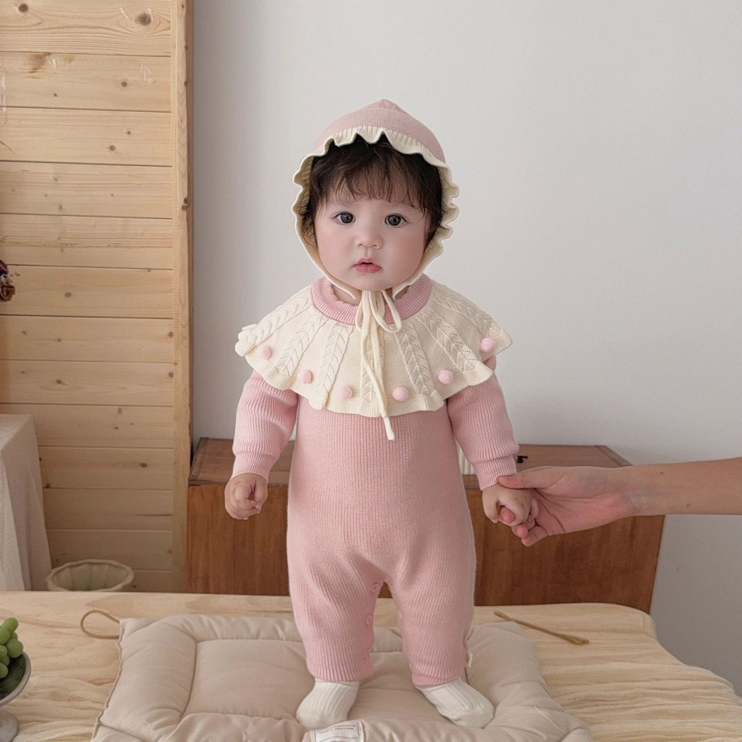 ベビーロンパース 秋用ニット長袖ボディスーツ 早秋用 小月齢用 可愛い秋服 ハイハイ服