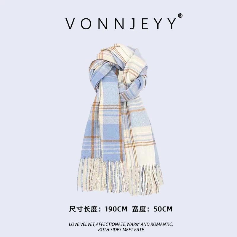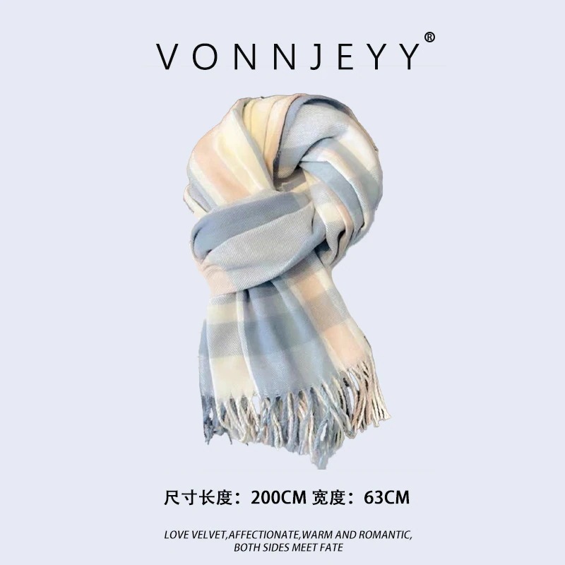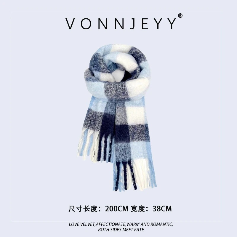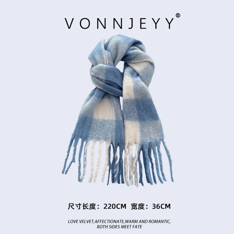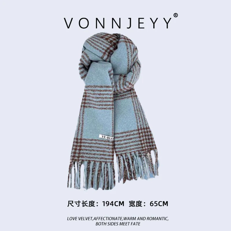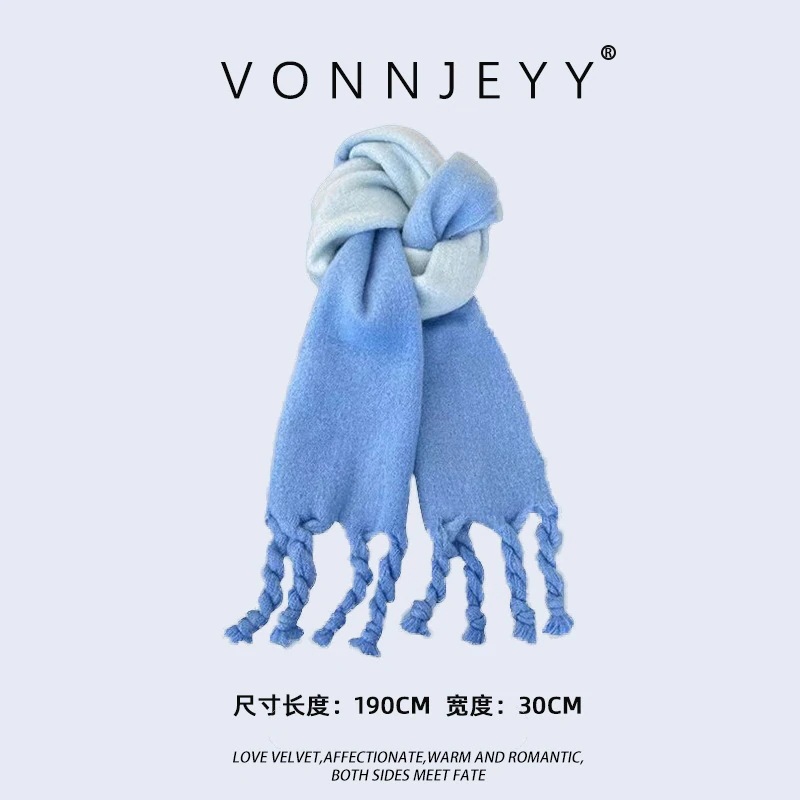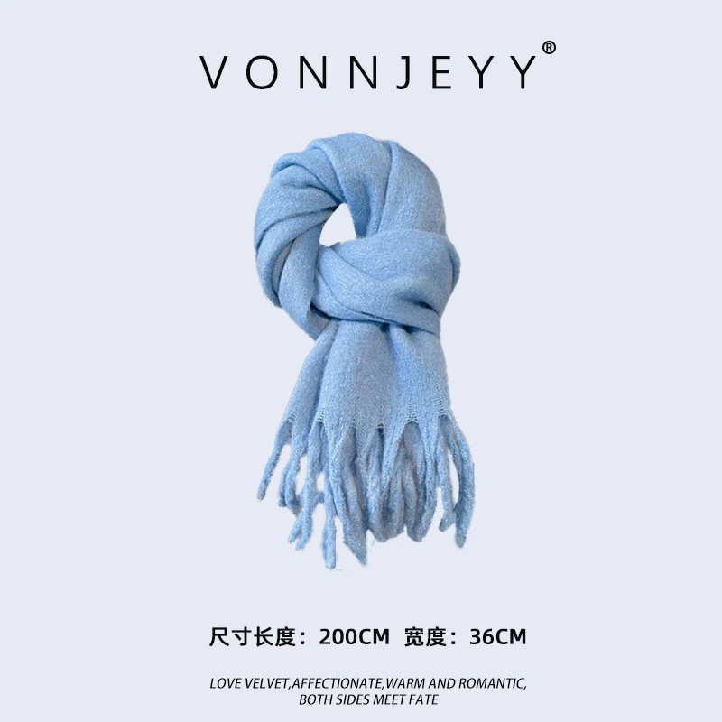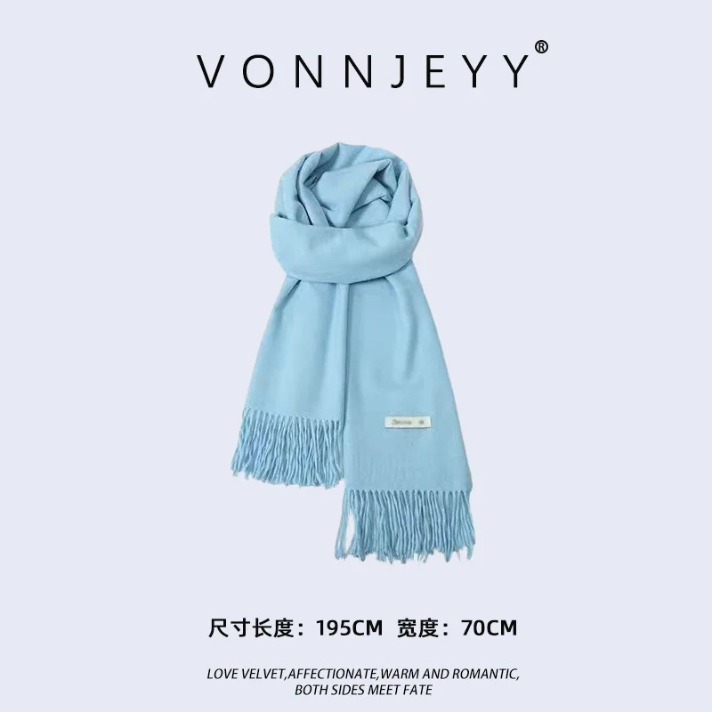 【冬季限定】新作ライトブルーの雰囲気感マフラー女性の冬の高級感マフラー