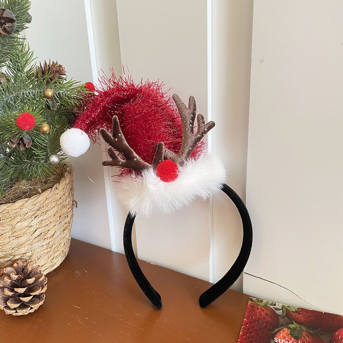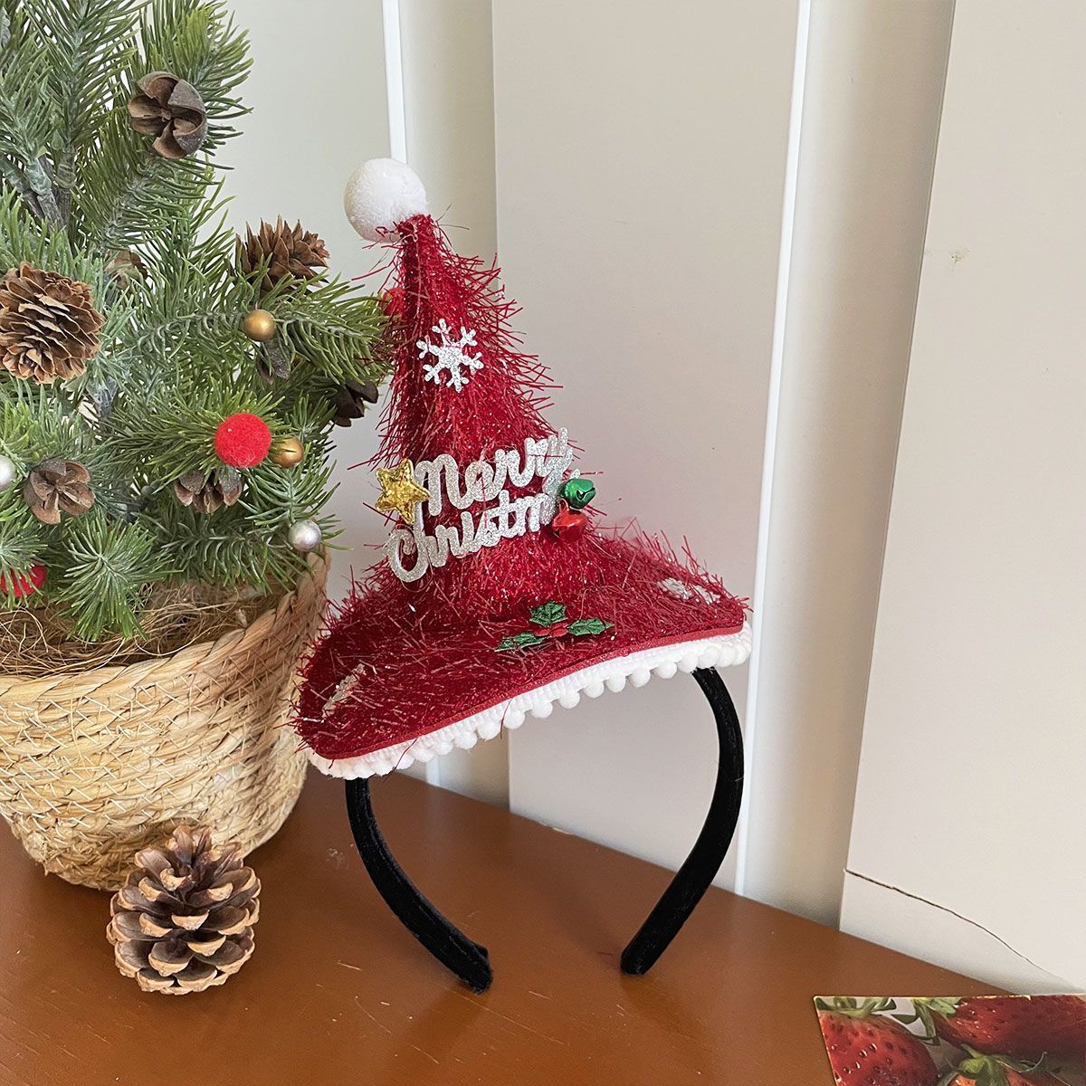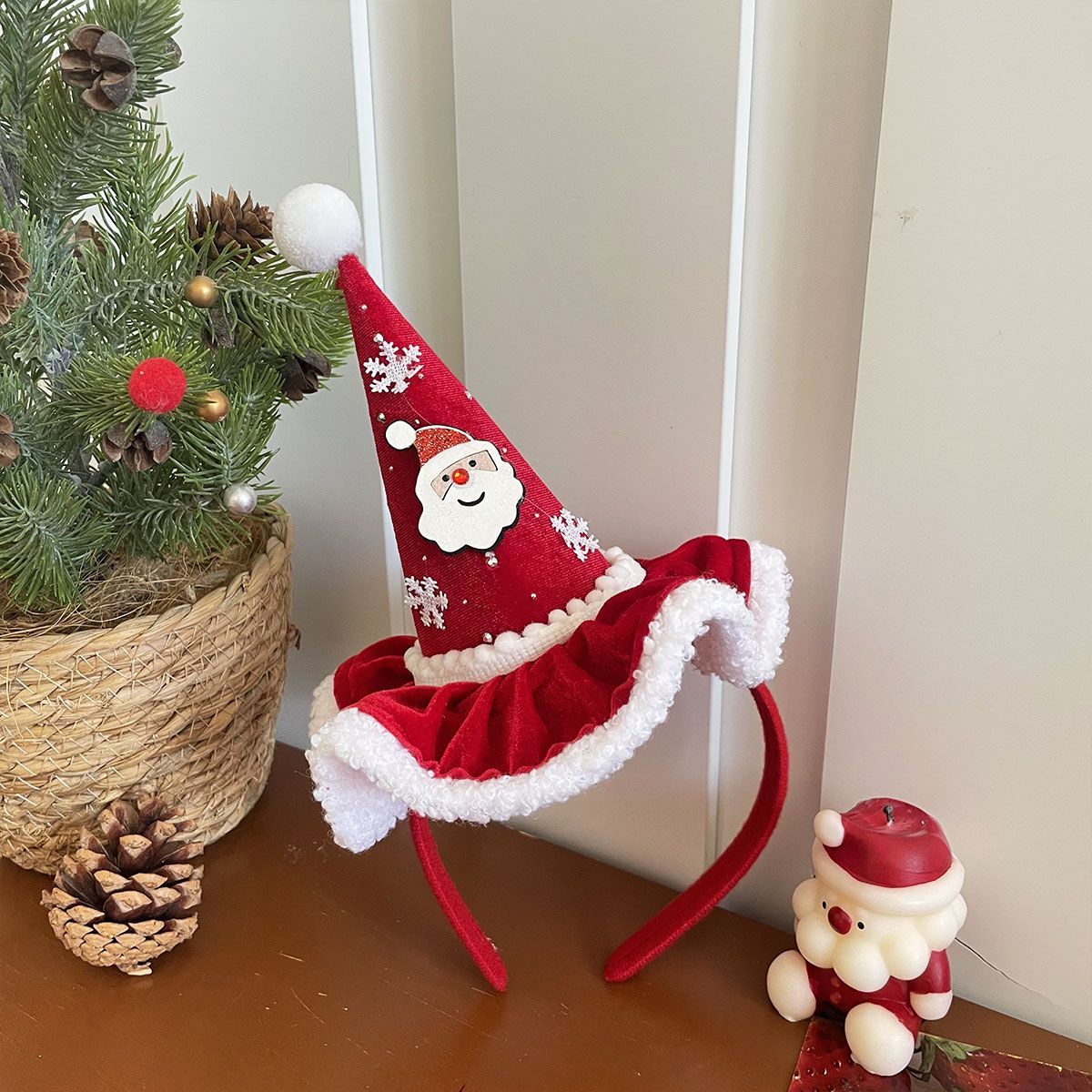 ウール サンタ帽 高い 頭蓋頂部 レディース 2025 新しい ヘアアクセサリー かわいい 滑り止め 集まり 写真を撮り カチューシャ