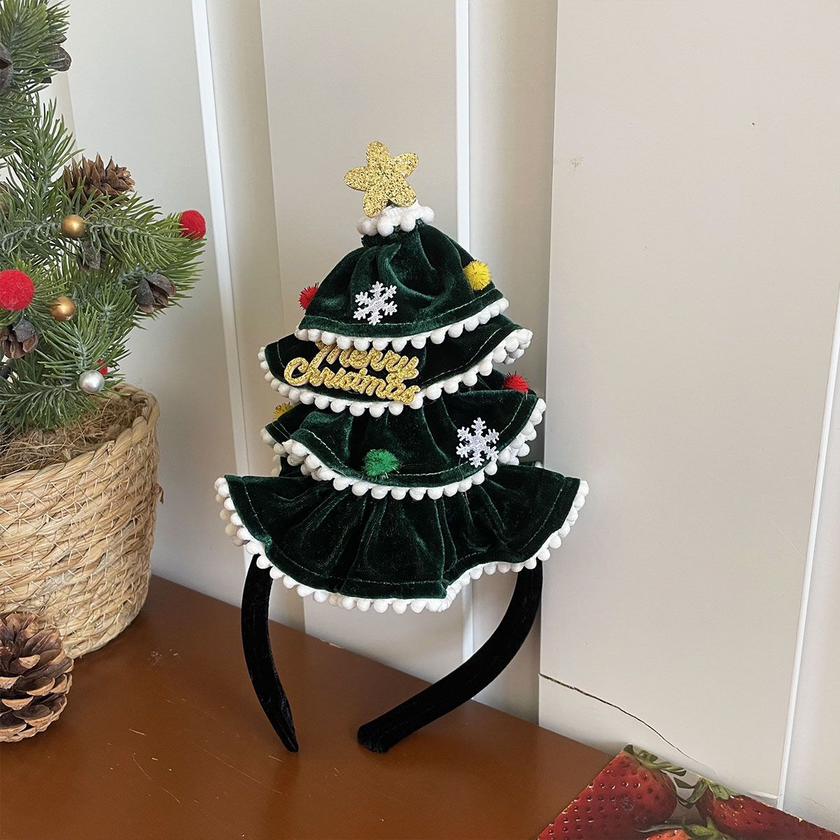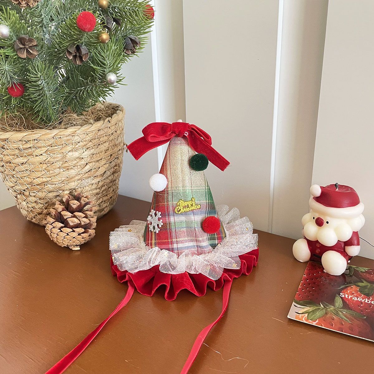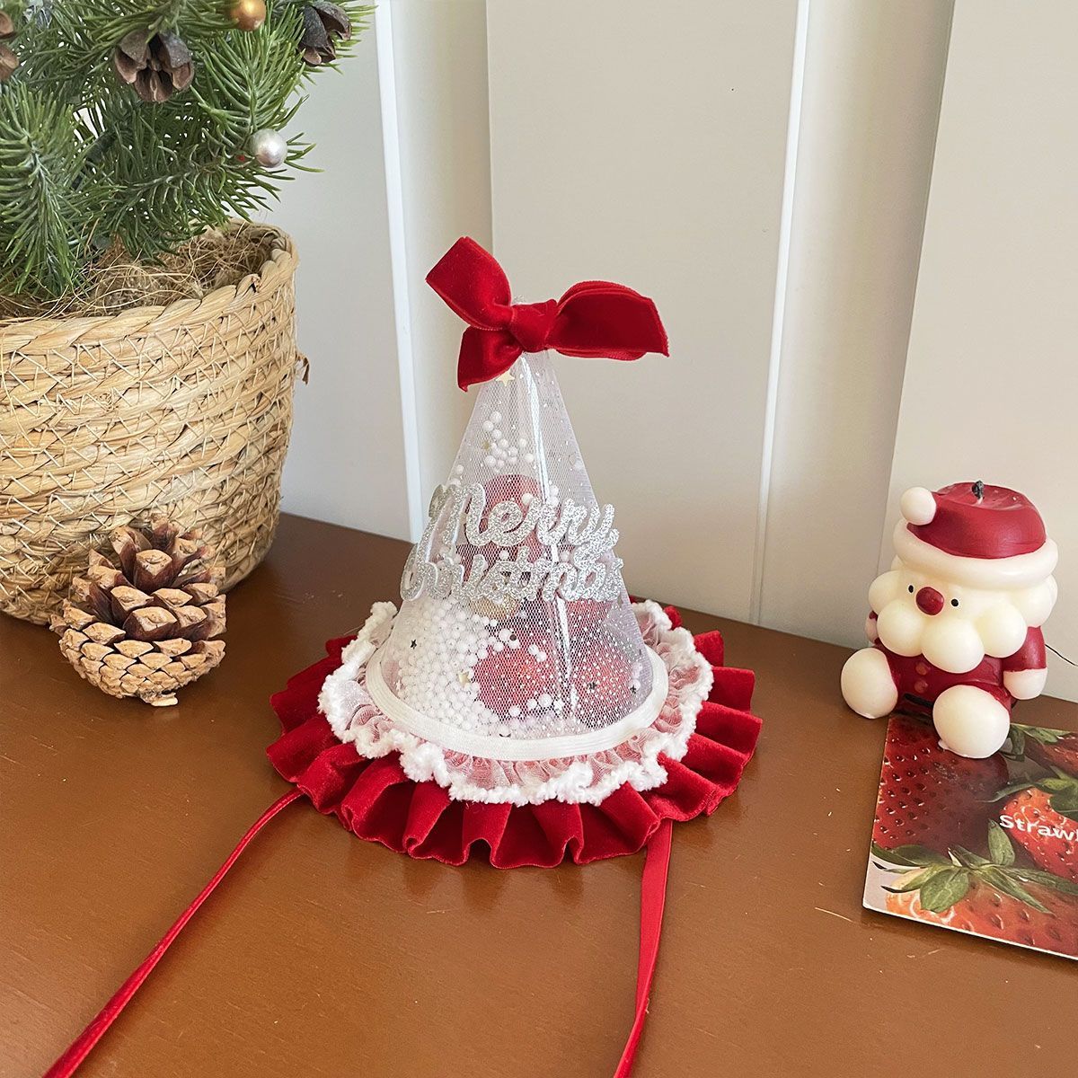 ウール サンタ帽 高い 頭蓋頂部 レディース 2025 新しい ヘアアクセサリー かわいい 滑り止め 集まり 写真を撮り カチューシャ