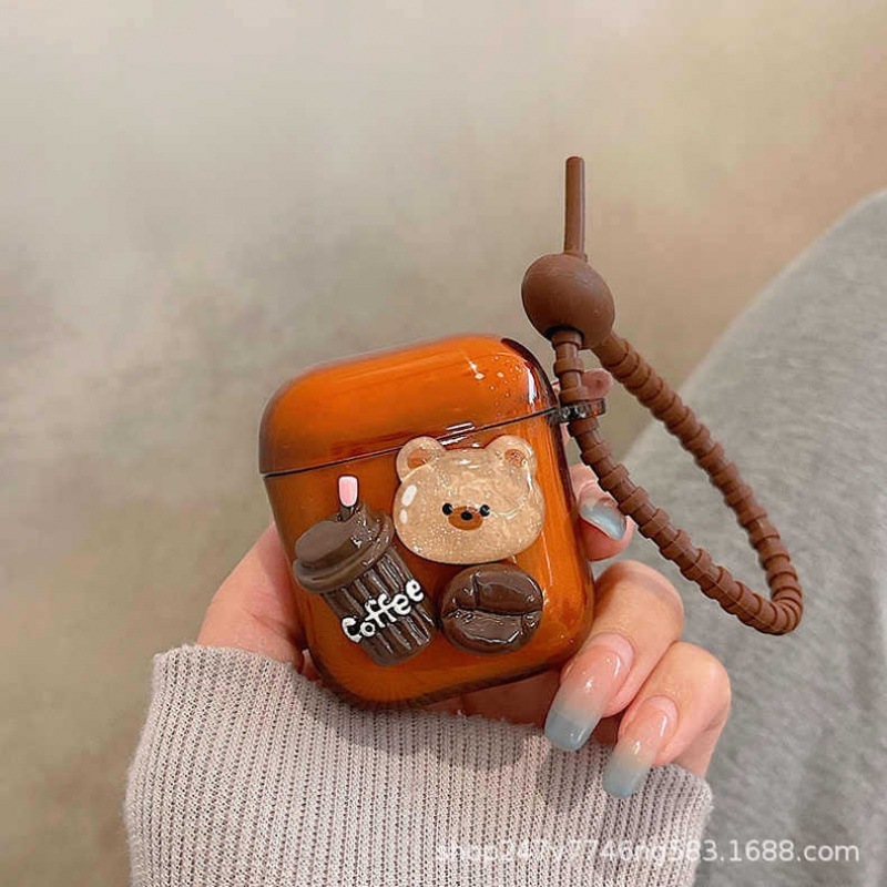 Apple ワイヤレス Bluetooth イヤホンケースキャラメルカラーチェーン付き 3D クマAirPods Pro 保護ケース