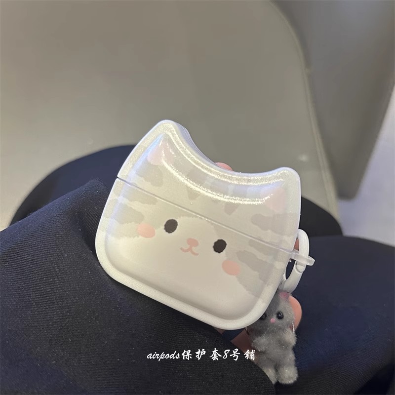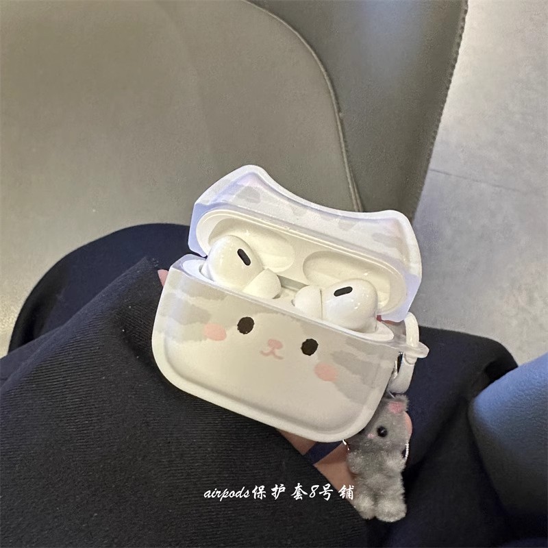 かわいい韓国風のグレーの子猫のデザインApple AirPods Pro 第 2 世代および第 3 世代のイヤホンケースに適しています