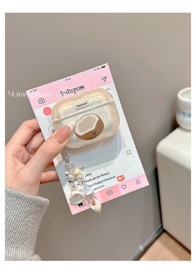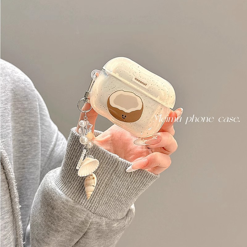 日本と韓国のインクスプラッターデザインが施されたココナッツをテーマにしたかわいい Apple AirPods 4 用保護ケースApple Bluetooth ワイヤレス第 1 世代 / 第 2 世