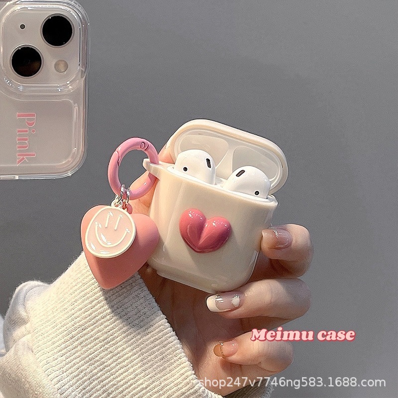 Apple イヤホンAirPodsAirPods ProAirPods 2 用の韓国風ハートとスマイリー フェイス ケース