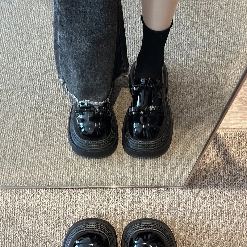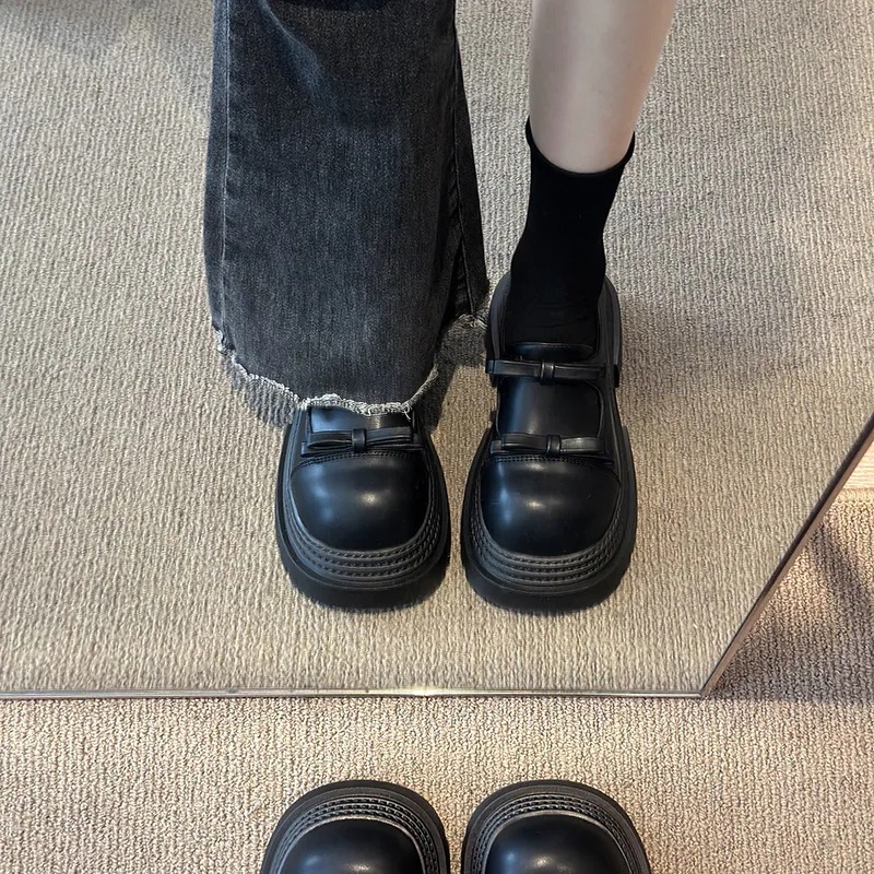 【3日出荷】レディース ブリティッシュ風 厚底 シークレットヒール レザーシューズ 春新作 リボン ローファー