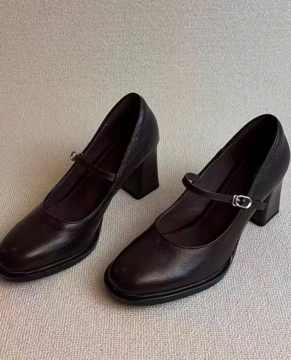 【3日出荷】レディース ハイヒール 新作 ラウンドトゥ ワンタッチベルト 太ヒール エレガント 通勤 メリージェーン