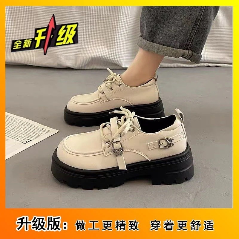 【3日出荷】レディース ホワイト ブリティッシュ風 ローファー 厚底 レザーシューズ 夏新作