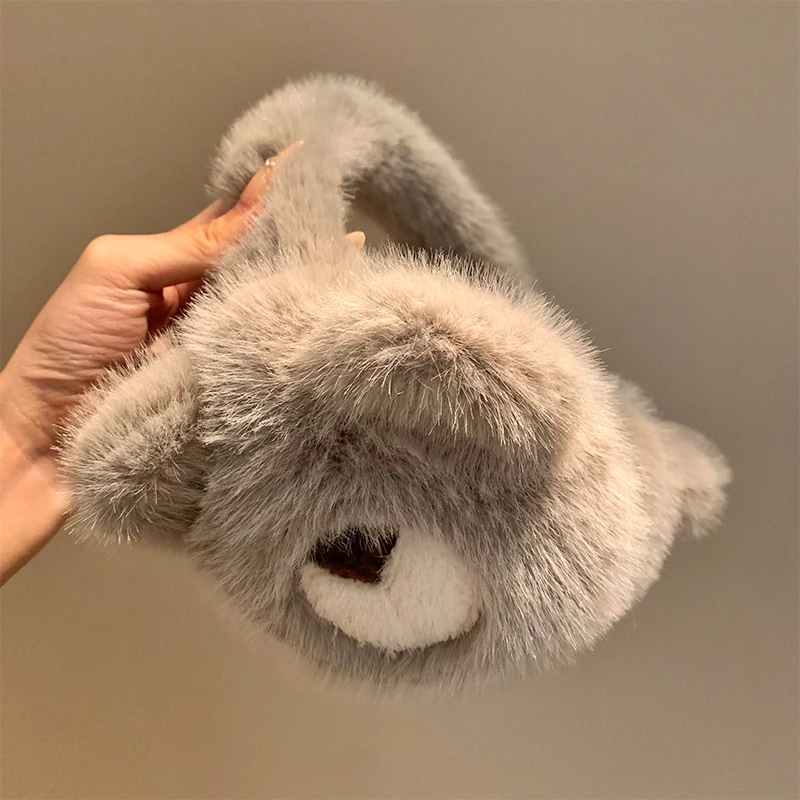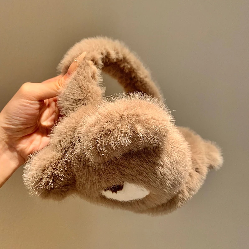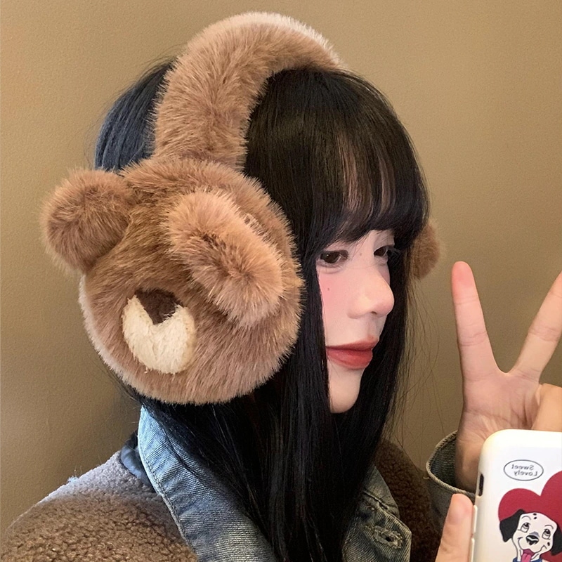 冬用厚手フリース耳当て付き女性用 可愛い立体クマ耳当て アウトドア・サイクリング・学生用防寒イヤーマフ イヤーマフ