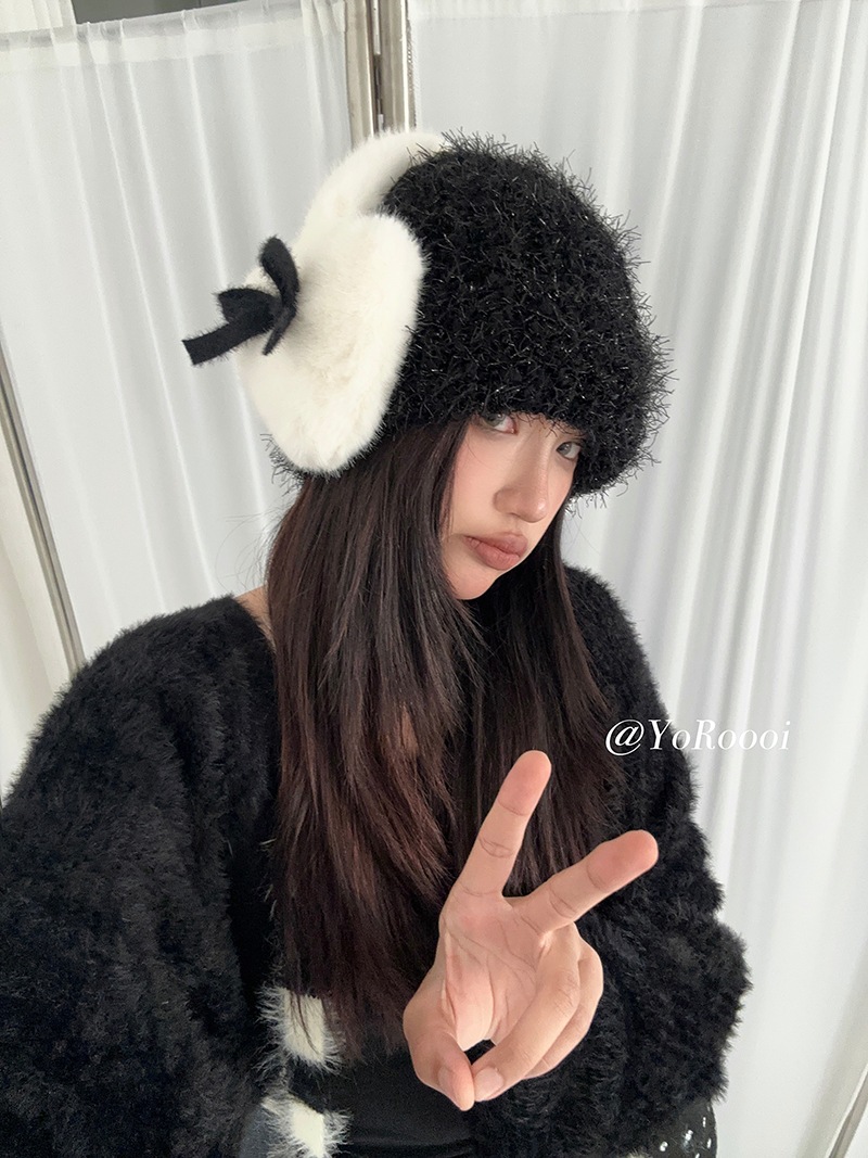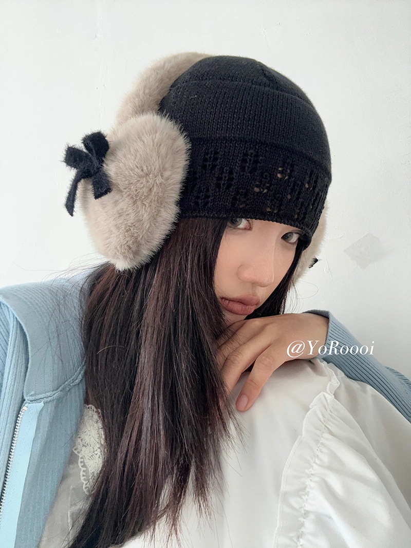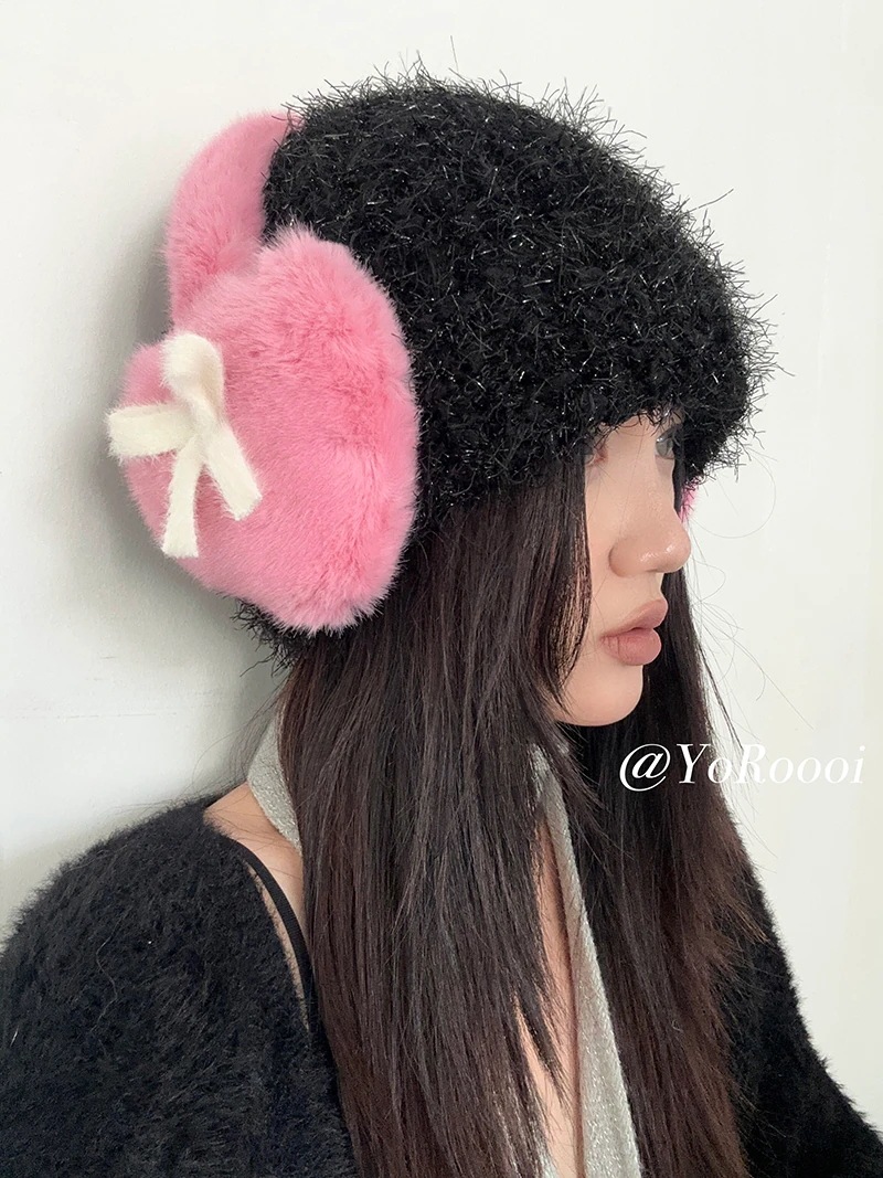 秋冬韓国風裏地付きリボンイヤーマフ 厚手防寒保温ハート型耳当て学生用耳カバー自転車用イヤーマフ イヤーマフ