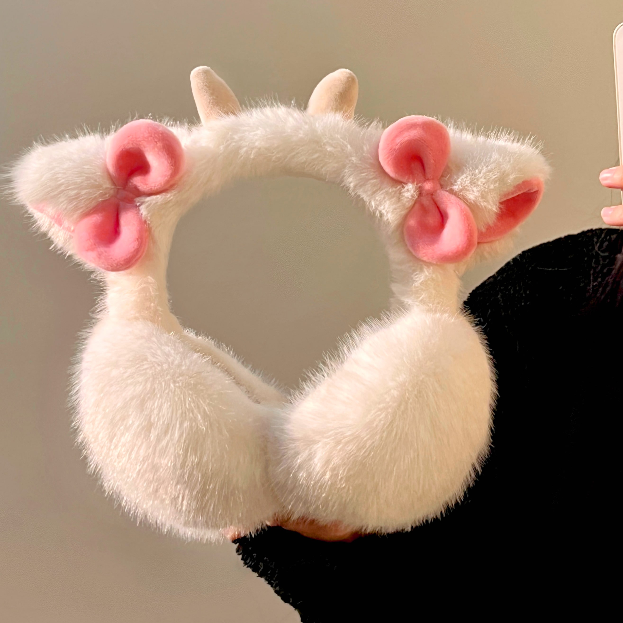 厚手防寒冬用耳当て子羊角モコモコ自転車防寒耳カバー 折りたたみ式学生用東北スタイル耳カバーイヤーマフ