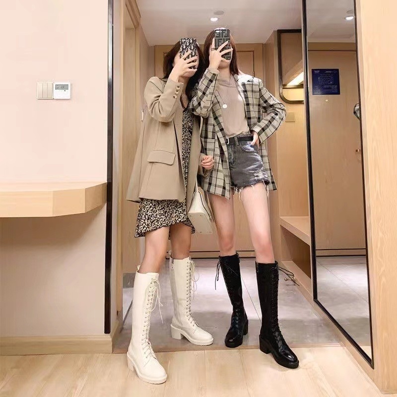 人気の新作靴 ロング 編み上げブーツ レディース 大き ストレッチ レースアップ 黒 履きやすい ロングブーツ【短納期】