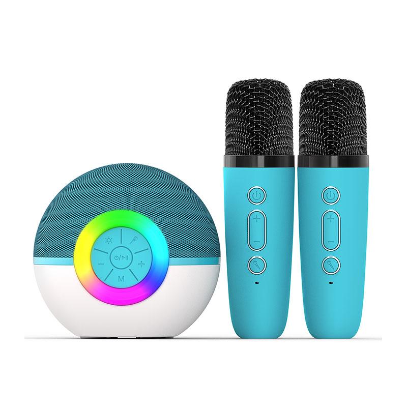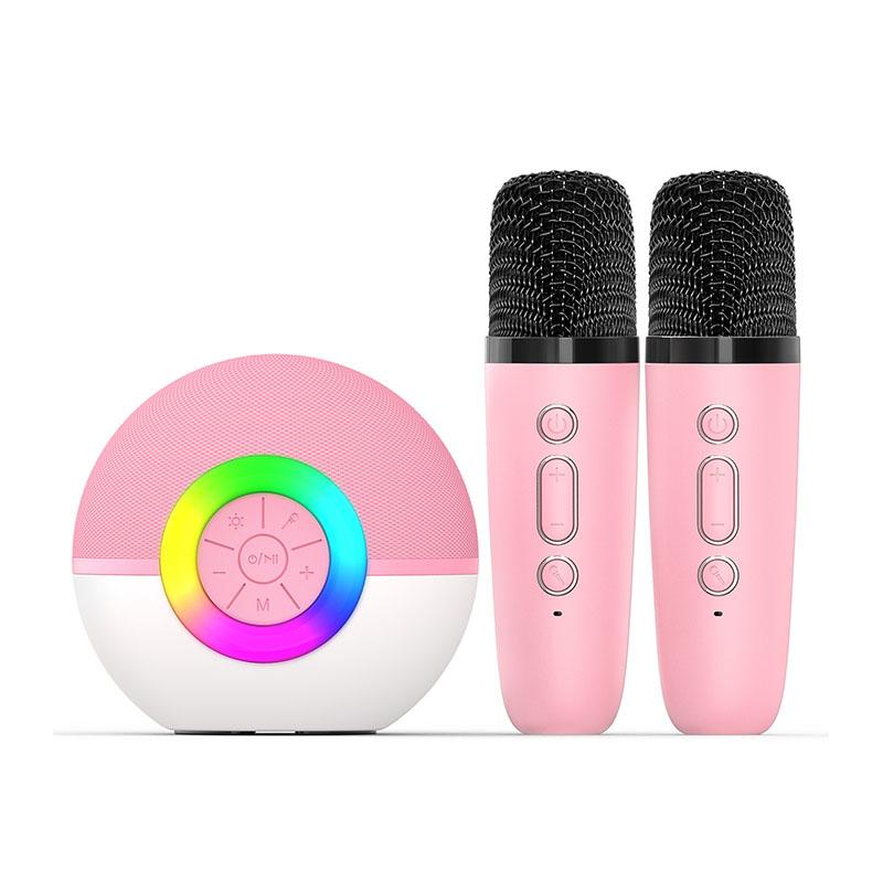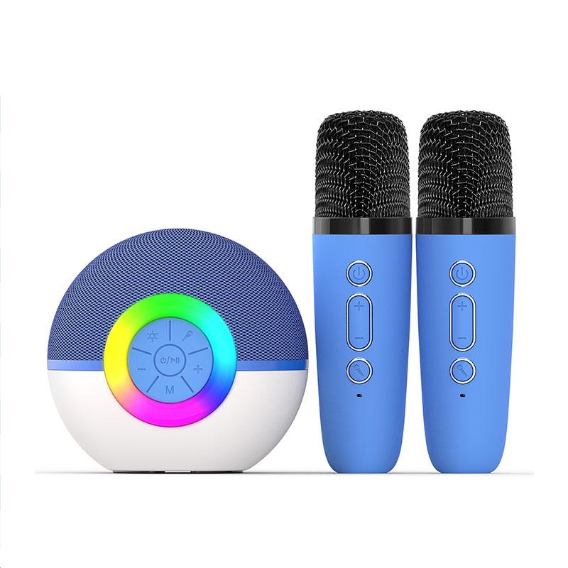 カラオケマイク スピーカーセット 子供用 Bluetooth マイク2本 マホ対応 音楽再生 LEDライト 小型スピーカーセット 自宅/アウトドア/iPhoneに対応 日本語取扱