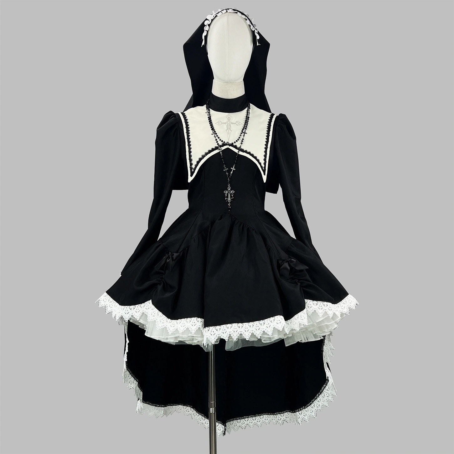 新作 ハロウィン コスプレ 修道女 シスター服 ブラックロングワンピース ウエスト引き締め ロリータワンピース ハロウィンパーティー