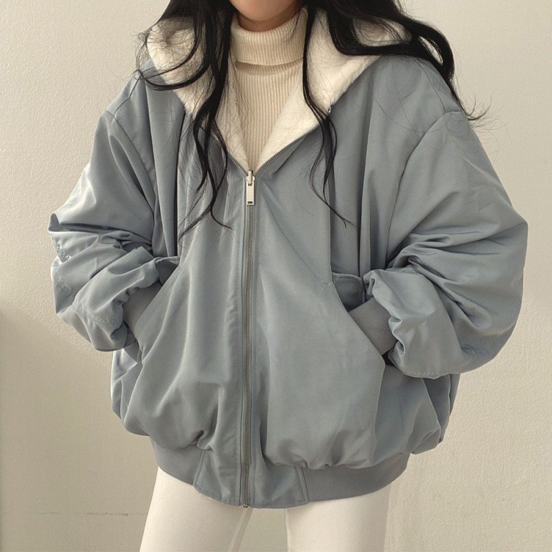 激暖ブルゾン 両面兼用 裏ボア 裏起毛 パーカー レディース S-2XL対応 防風 防寒 トップス 羽織り 上着 長袖 大きいサイズ ゆったり 秋冬 ジッパー付き フード付き コットンアウター