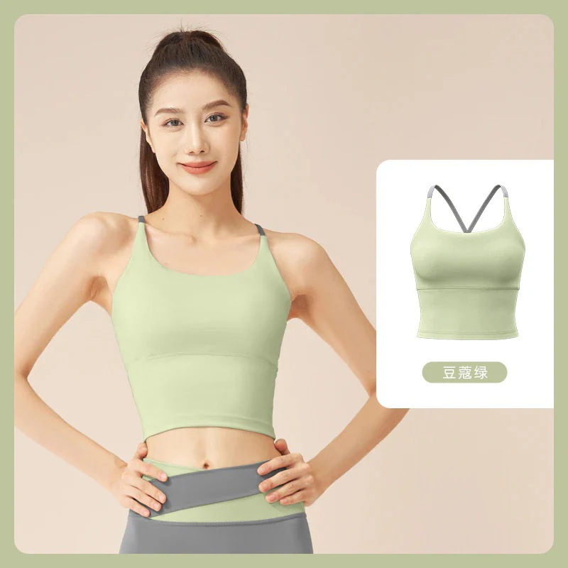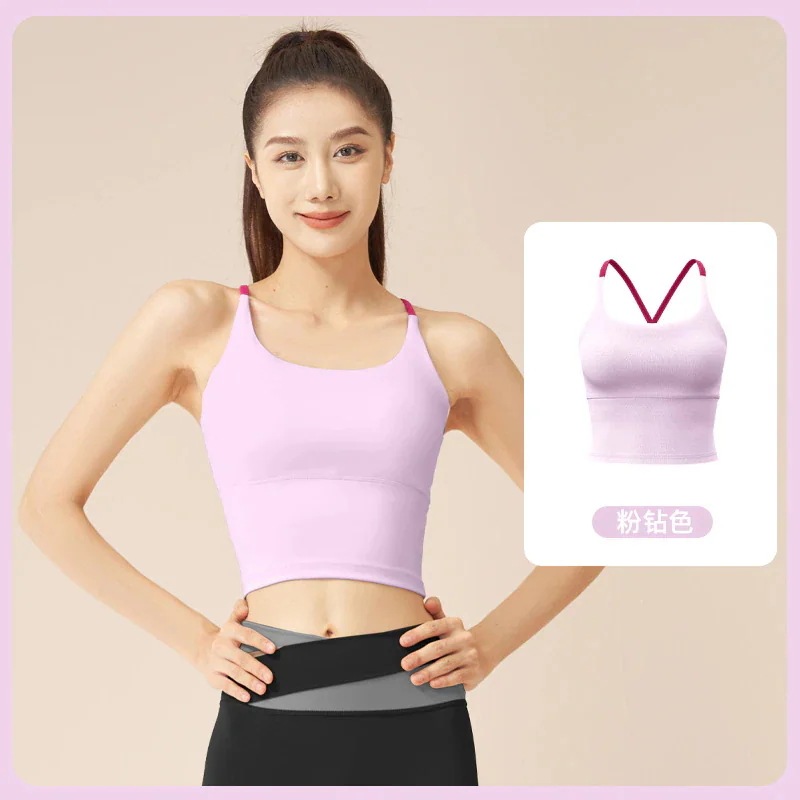 新作カラーブロックヨガウェアスポーツセット 衝撃吸収 機能付き タンクトップ&ロングパンツ2点セット スポーツブラ