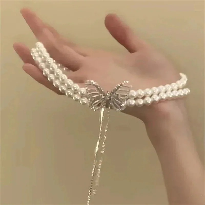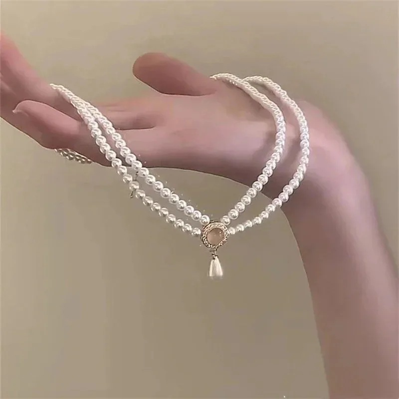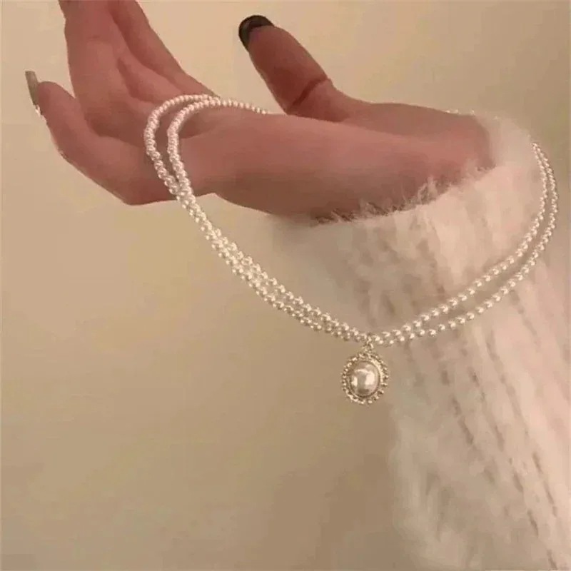 美しい首元ネックレス 25 新作 二重パールネックレスアクセサリー感鎖骨チェーン 百掛け 韓国ファッション 美しい首元 シルバージュエリー