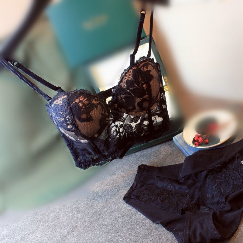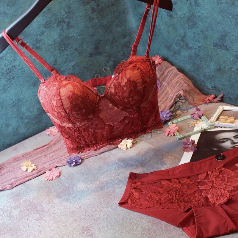 可愛いセット下着 ナイトブラシーム レスブラーサイズノンワイヤーブラ上下セット カップ付きインナーセット 刺繍