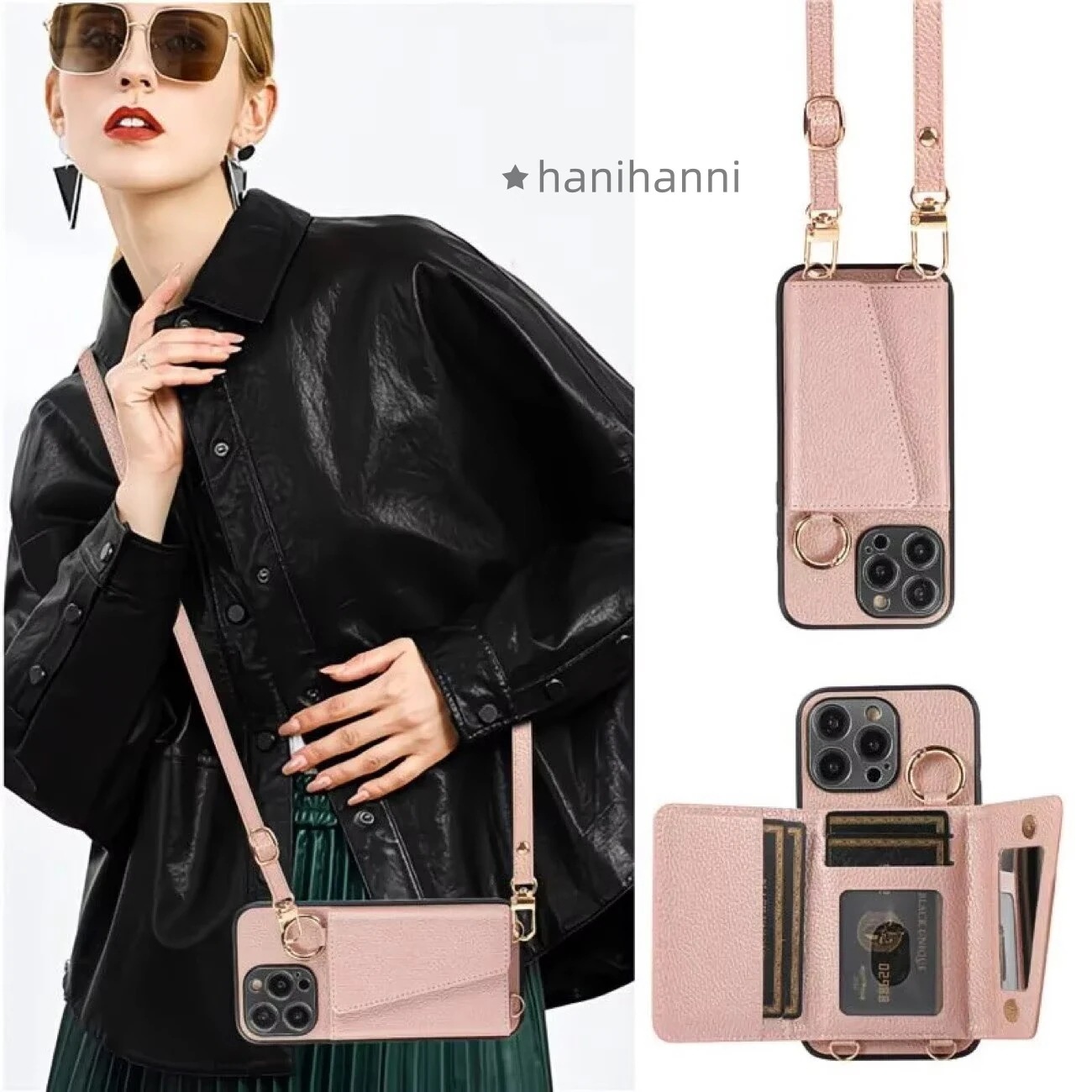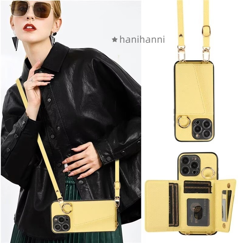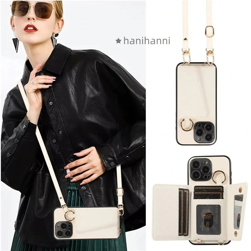 iPhone15ケース ショルダー タイプ 肩掛け 斜めかけ 携帯ケース 背面手帳型 カード収納 ミラー 鏡付き リング付き 背面ポケット iPhone14 13 12mini 11 7 8保護ケース