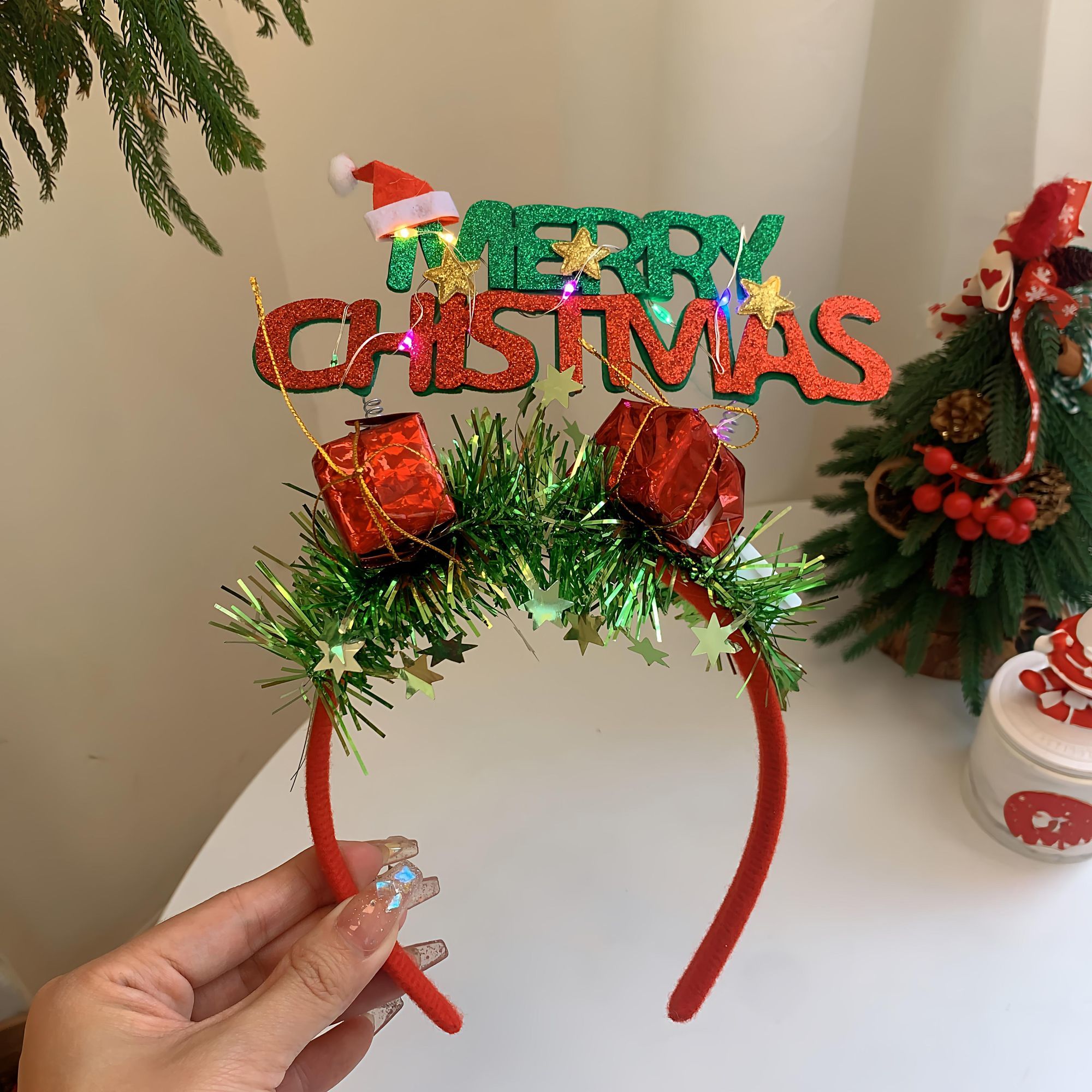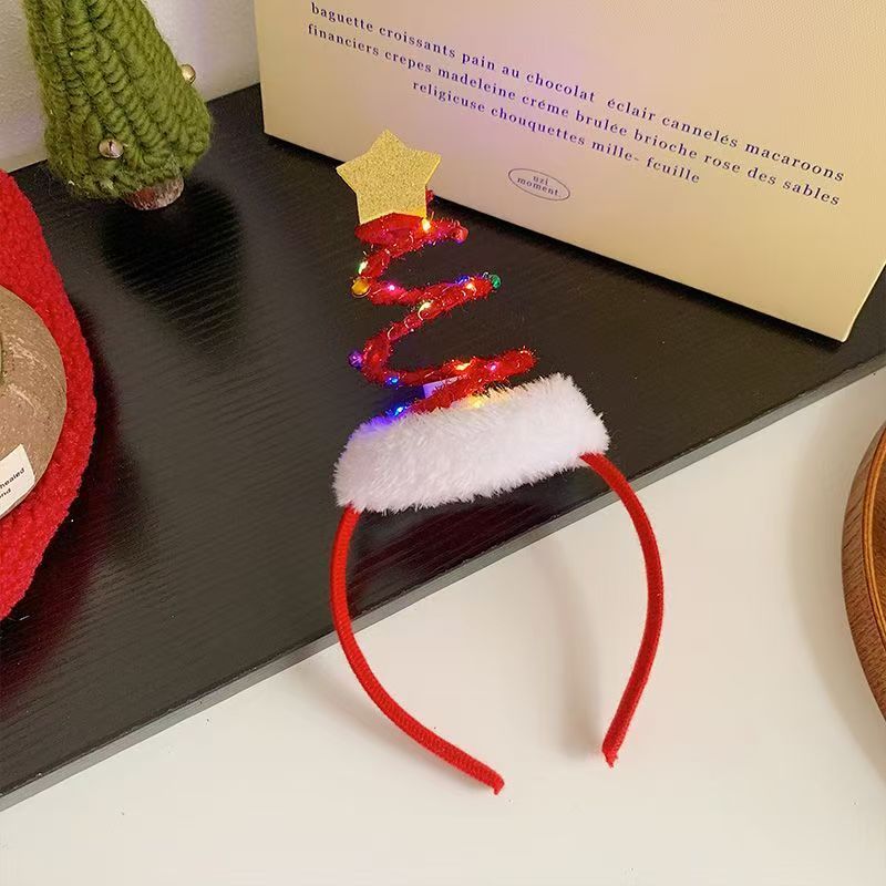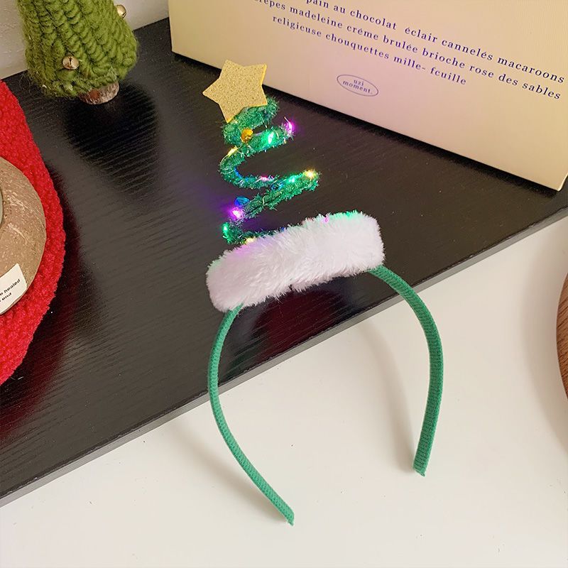 ライト付き 発光し クリスマス カチューシャ クリスマスツリー サンタ帽 誇張し お祭り パーティー 装い ヘアアクセサリー