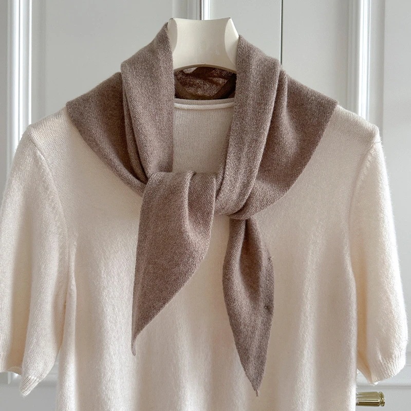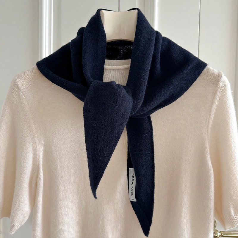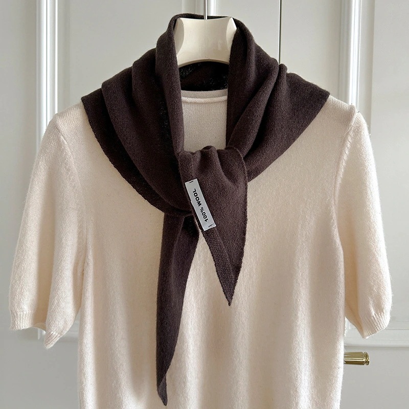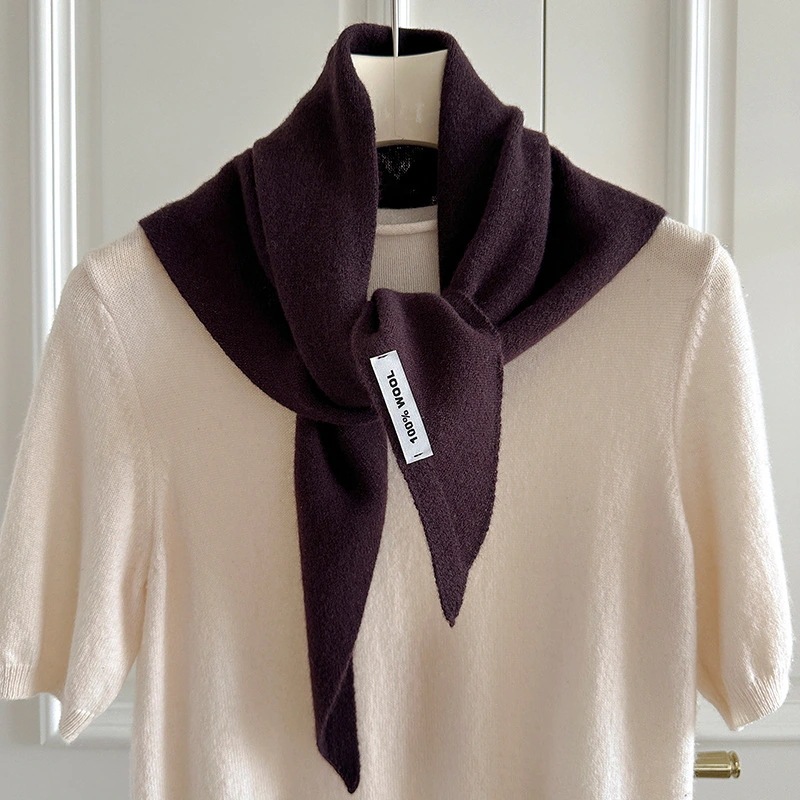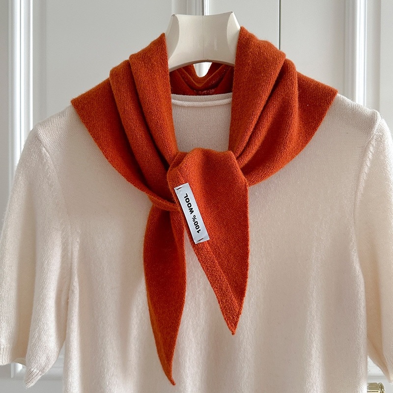 ニット三角巾女頭巾マフラーレイヤードでカジュアル保温コーデ