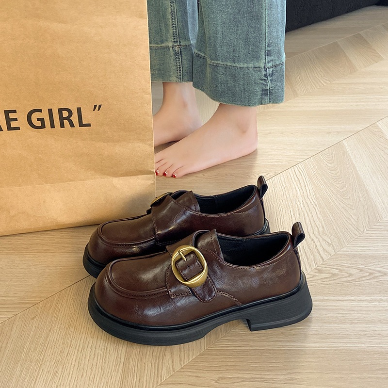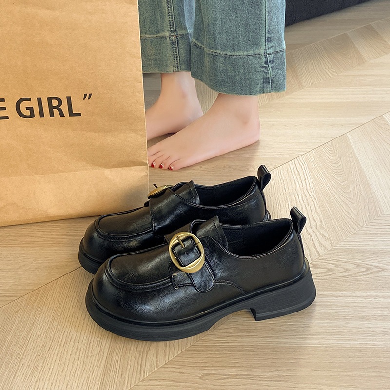 厚い底の小さい靴の女性の春の新型の黒色の英倫の風の音楽の福の靴は組み合わせてスカートの1足の靴を配合します