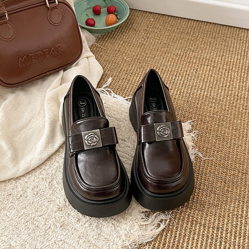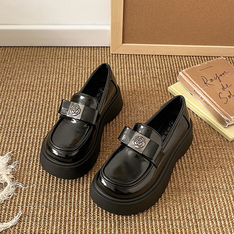 黒の英倫風が高くなりました厚い底の小さい靴の女性の新型の秋にスカートの柔らかい底の楽福の靴を配合します
