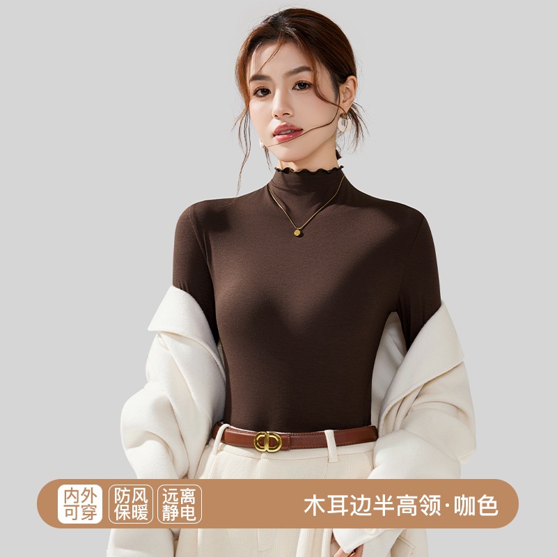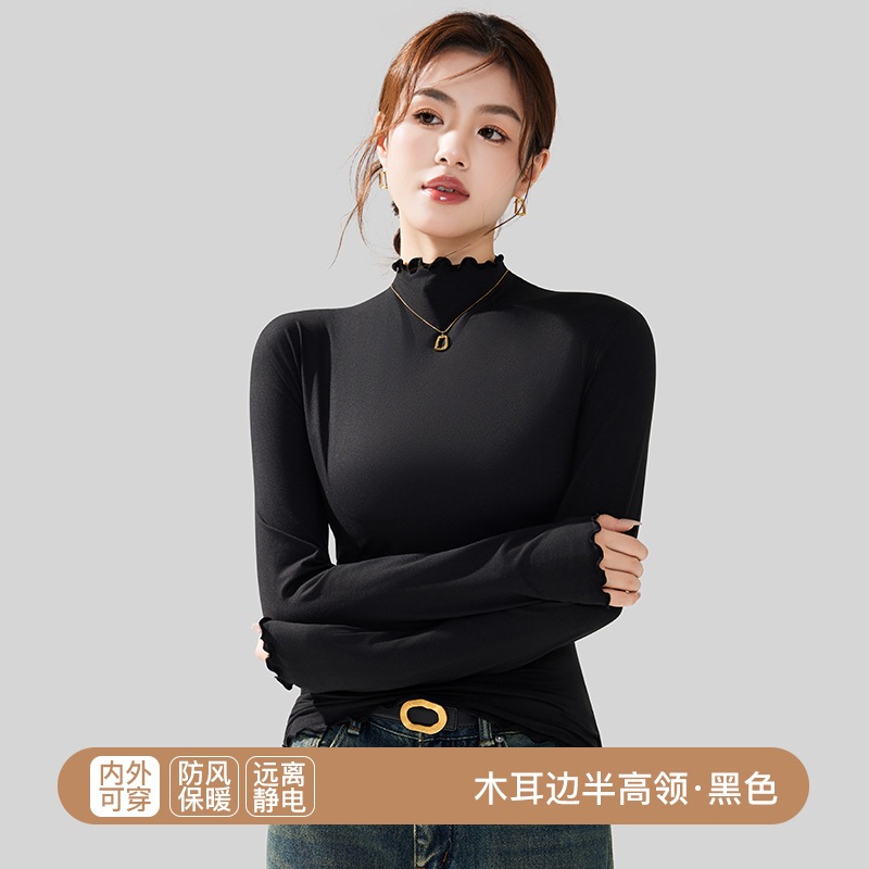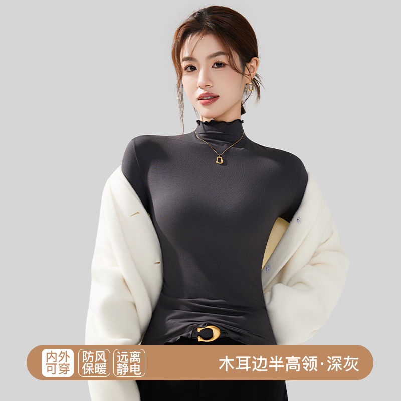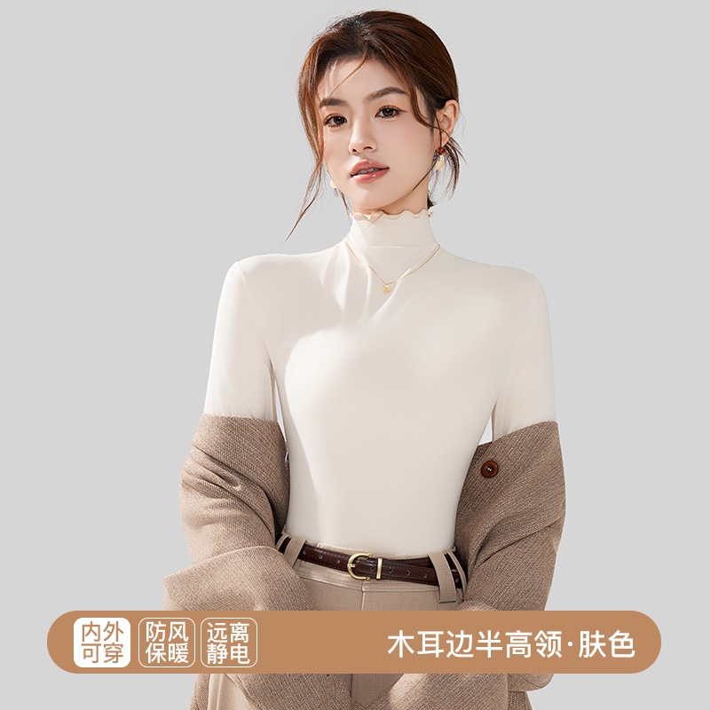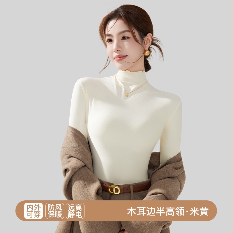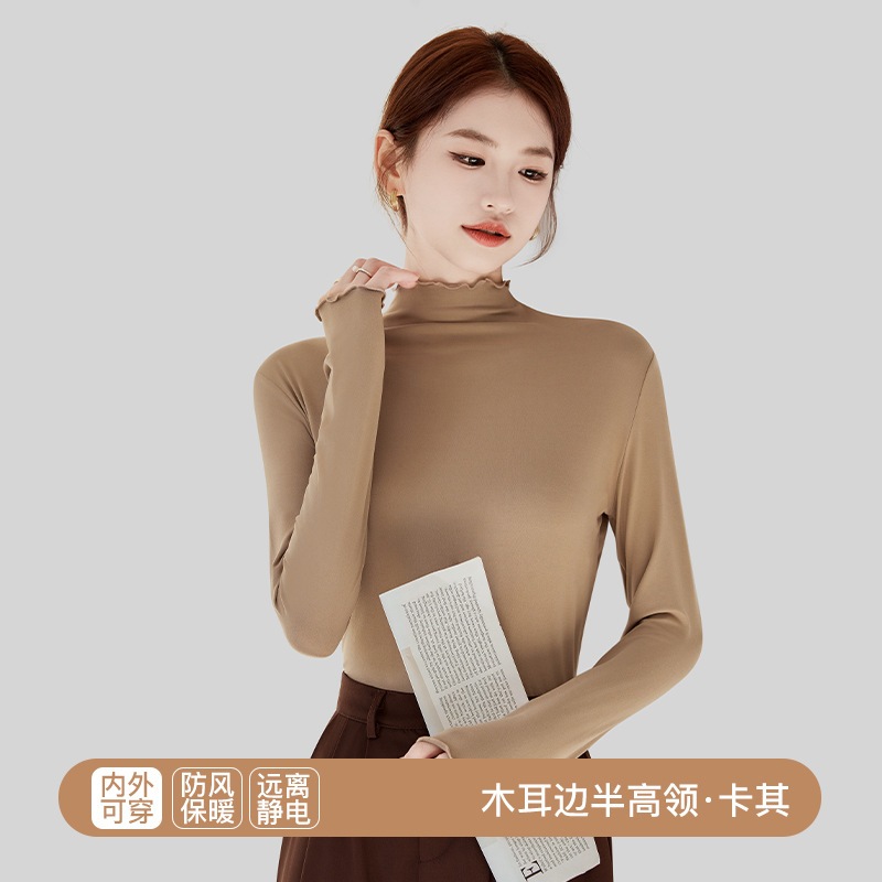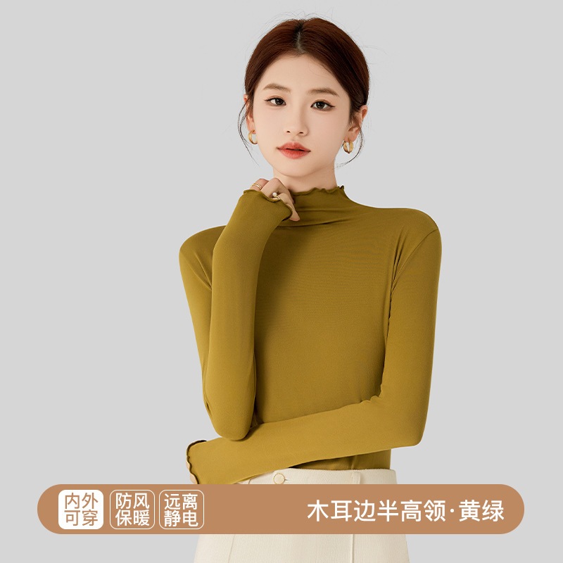 秋冬 レディース インナートップス スリムフィット 微起毛 セミハイネック インナー長袖 薄手 着ぶくれしない ストレッチ 柔らか