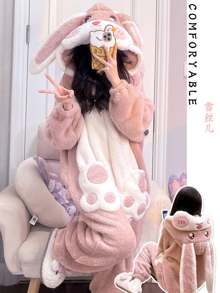 パジャマ レディース 秋冬 長袖 フード付き ゆったり キャラクター ウサギ パジャマ ホームウェア
