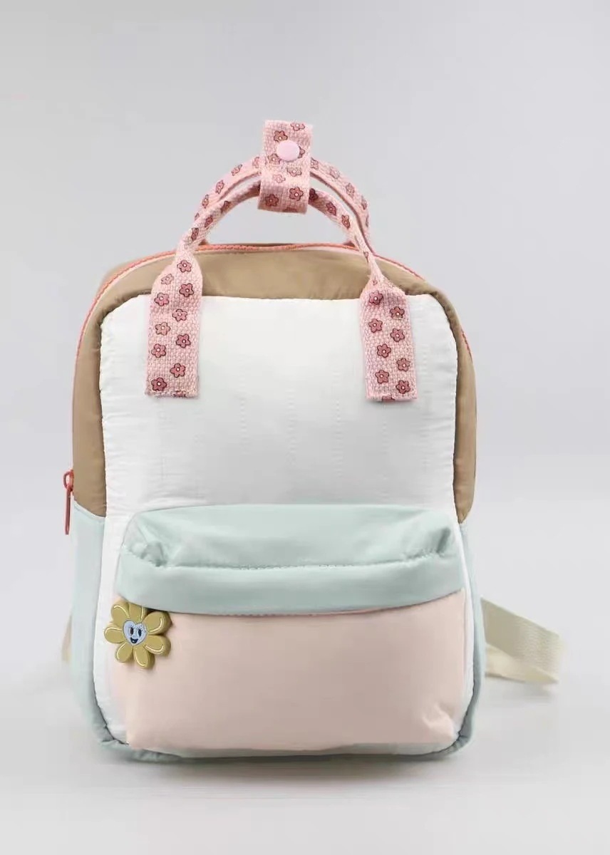【3日出荷】ひまわりチャーム付き両肩バッグ 超軽量 キッズお買い物用 童心あふれるカラーブロックバッグ キッズバッグ
