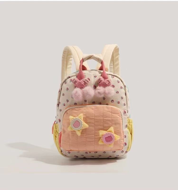【3日出荷】イチゴ星柄カラーブロック キッズ小型両肩バッグ 幼児お出かけ用 キッズバッグ